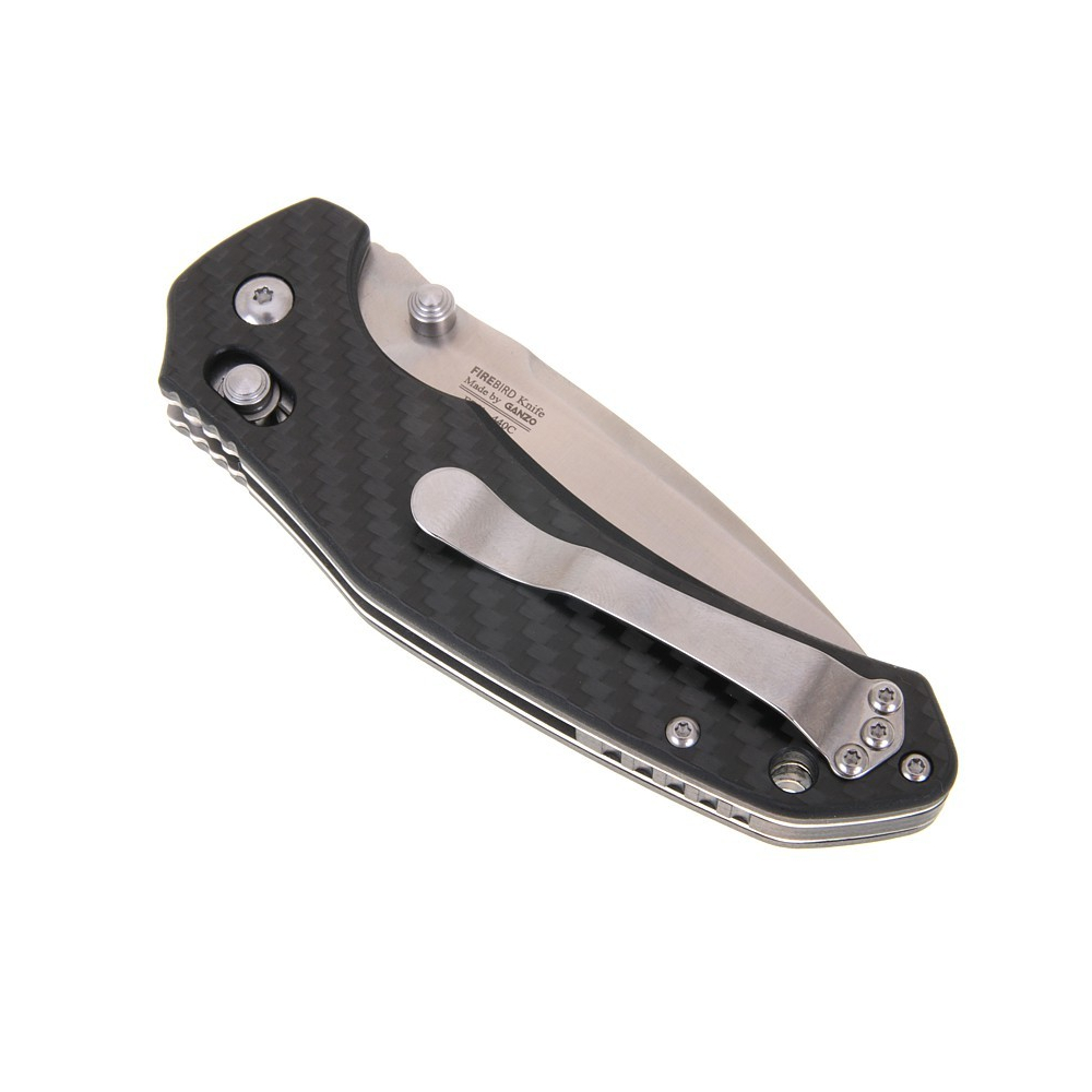 FireBird F7611 Vám svou velikostí příjemně padne do ruky i když se jedná o masivnější nožík. Čepel o délce 87mm má plochý výbrus a je zajištěna pojistkou G-Lock (Axis-Lock). Střenky jsou, jak už je dobrým zvykem, z materiálu G10, klip můžete přehodit z pravé strany na levou (ale jen na konci rukojeti) a nezapomnělo se ani na malý otvor pro provlečení Paracordu.