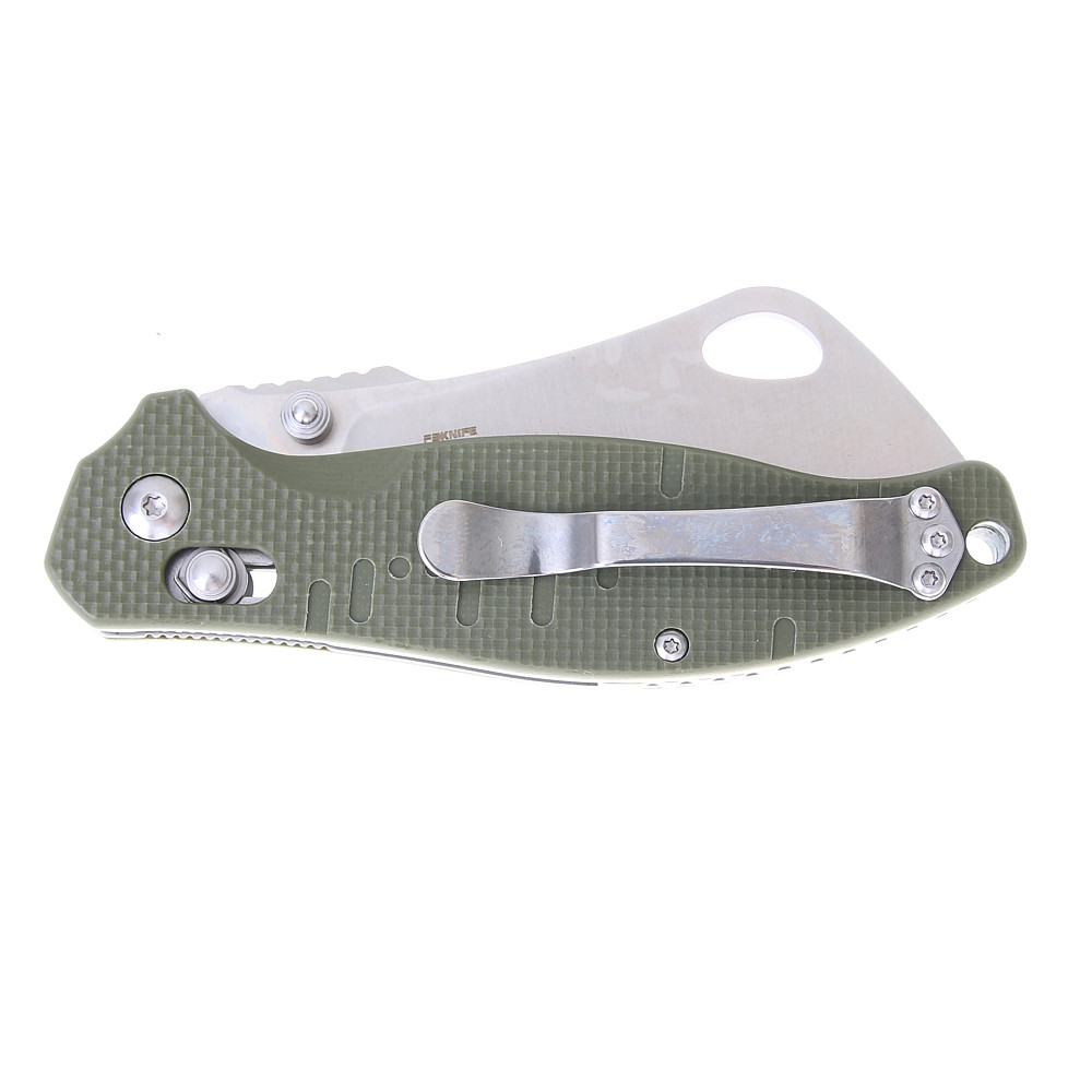 Rukojeť je vyrobena z odolného kompozitu G10, lehkého, pevného a ergonomicky tvarovaného tak, aby přesně padla do dlaně. Povrch má texturovaný vzor, který zajišťuje jistý úchop i za mokra. Rukojeť je dostupná ve dvou barevných variantách – černé, a zelené.