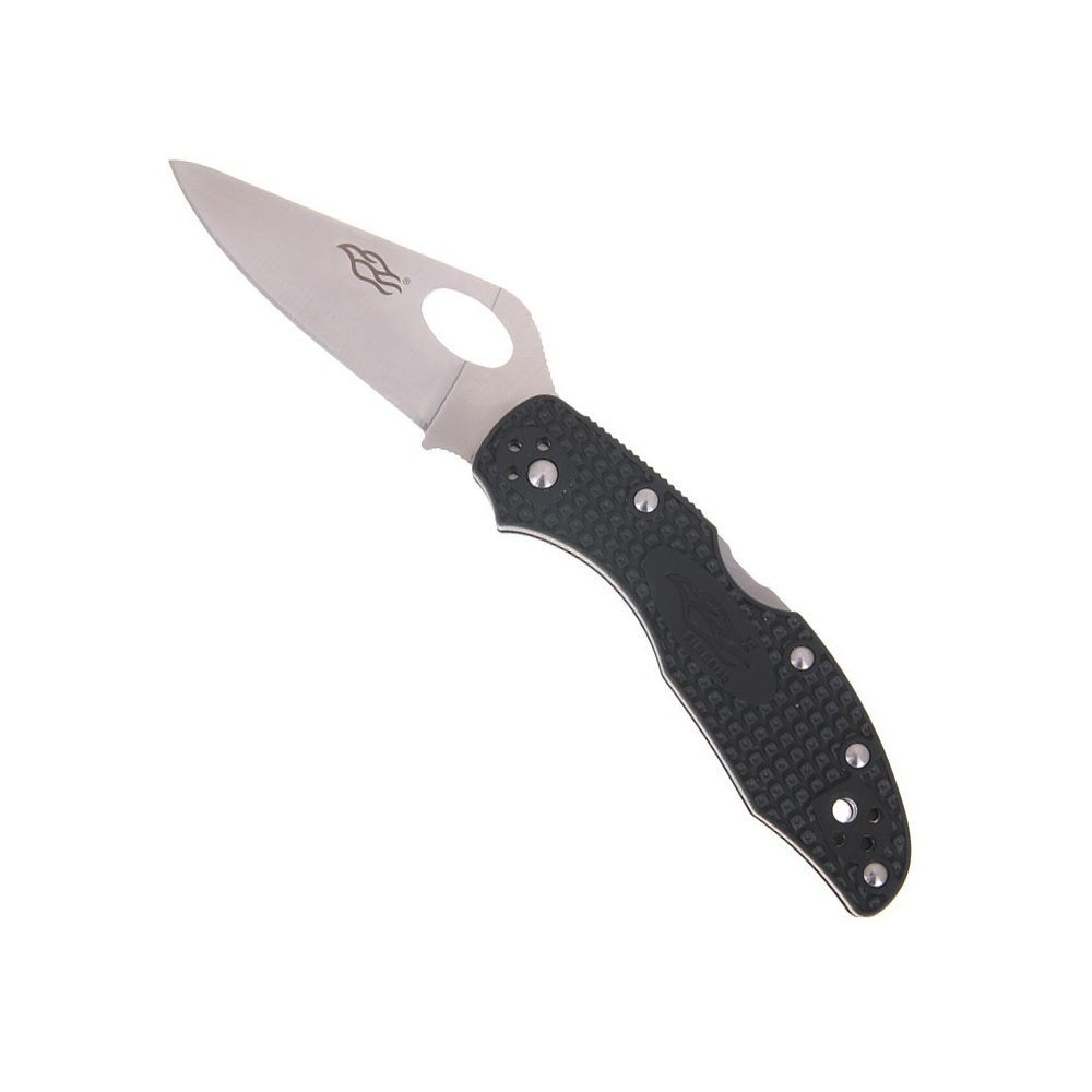 Čepel nože Firebird F759M je vyrobena z kvalitní nerezové oceli 440C, což potvrzuje i označení přímo na čepeli. Délka čepele činí 7,5 cm a je opatřena plochým výbrusem, které je vhodné jak pro krájení potravin, tak pro běžné každodenní úkoly. Povrch čepele má saténovou úpravu, která působí elegantně a zároveň pomáhá skrýt drobné škrábance. Charakteristickým prvkem je zvednutá linie hřbetu čepele a výrazný oválný otvor pro snadné otevírání, jenž nahrazuje klasický kolíček.