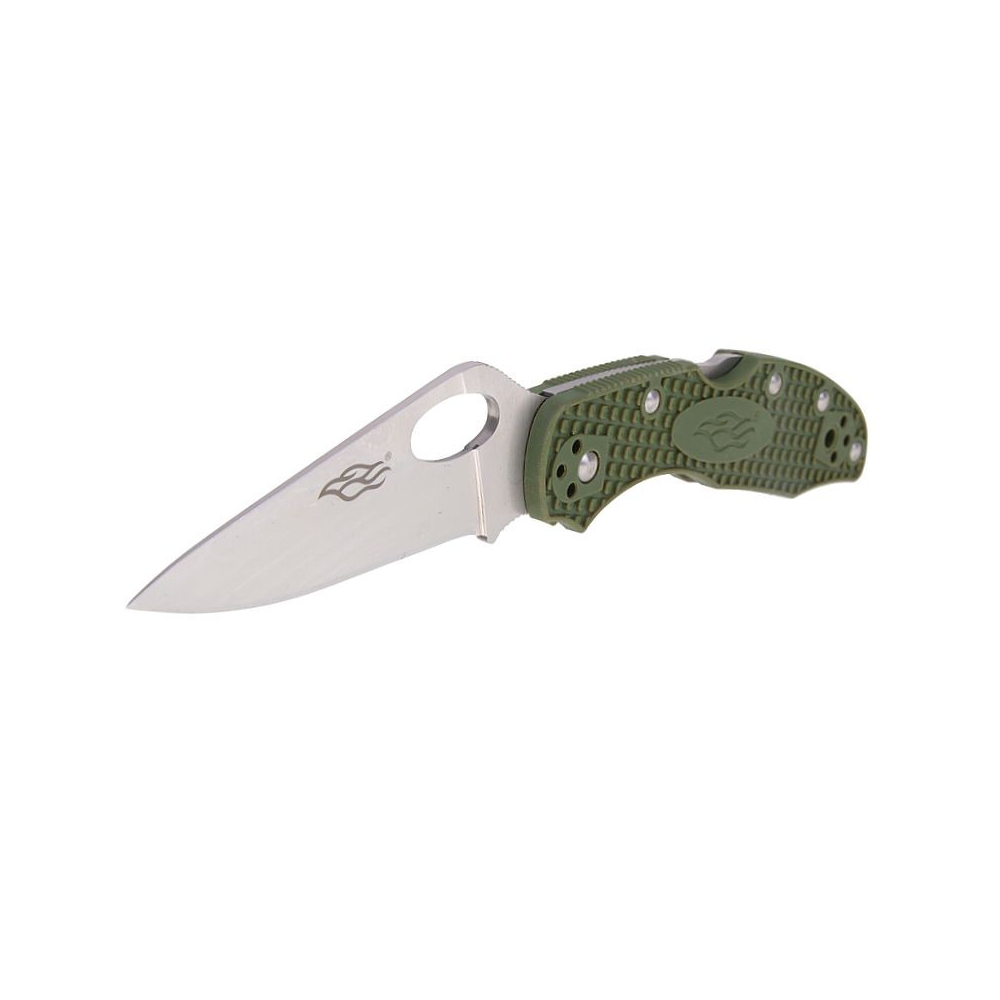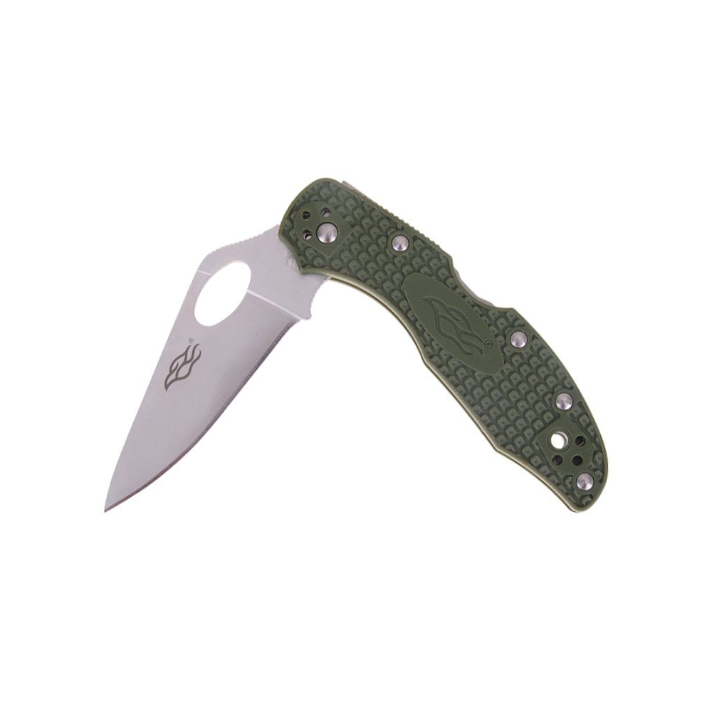 Čepel nože Firebird F759M je vyrobena z kvalitní nerezové oceli 440C, což potvrzuje i označení přímo na čepeli. Délka čepele činí 7,5 cm a je opatřena plochým výbrusem, které je vhodné jak pro krájení potravin, tak pro běžné každodenní úkoly. Povrch čepele má saténovou úpravu, která působí elegantně a zároveň pomáhá skrýt drobné škrábance. Charakteristickým prvkem je zvednutá linie hřbetu čepele a výrazný oválný otvor pro snadné otevírání, jenž nahrazuje klasický kolíček.