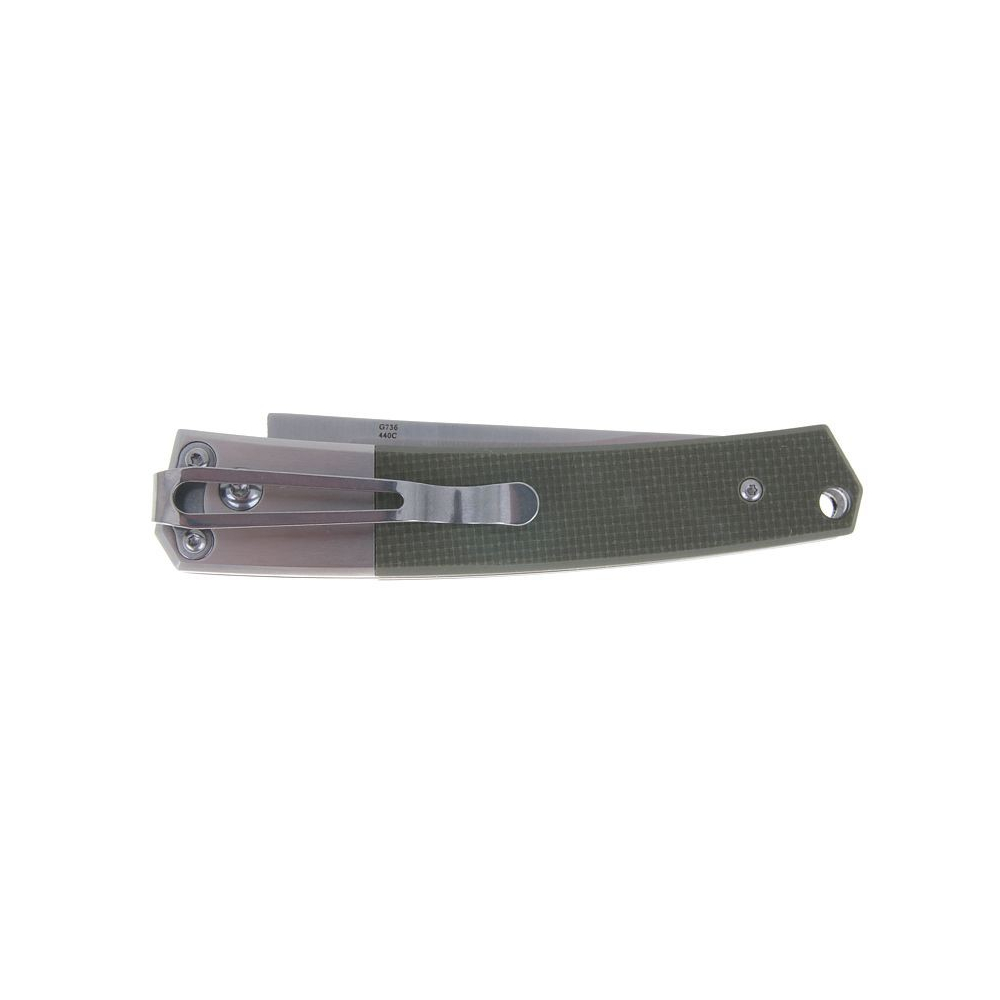 A teď více o detailech tohoto nože a jeho vlastnostech. Čepel je vyrobena z nejprodávanější výrobní oceli 440C. Jedná se o slitinu z nerezové oceli s obsahem uhlíku do 1,2%. Je to nejtvrdší materiál ve své skupině, který umožňuje dobré naostření čepele. Aby zůstal zachován původní vzhled a vlastnosti, stačí elementární péče, jako je pouhé otřením čepele vlhkým hadříkem po použití. Výbrus je plochý a tím je použití nože univerzální. Čepel je leštěná a tedy odráží světlo a sluneční paprsky. Zajištěna je pomocí zámku Button-Lock. Po jeho zmáčknutí se čepel vytočí do otevřeného stavu pomocí vestavěné pružiny.