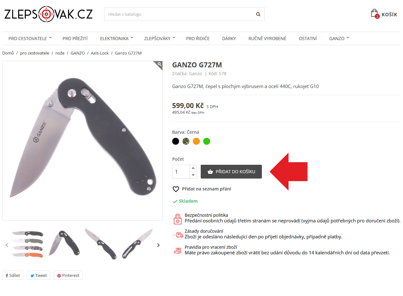 U vybraného zboží upravíte množství (množství můžete upravit i později přímo v košíku) a kliknete na tlačítko "Přidat do košíku"