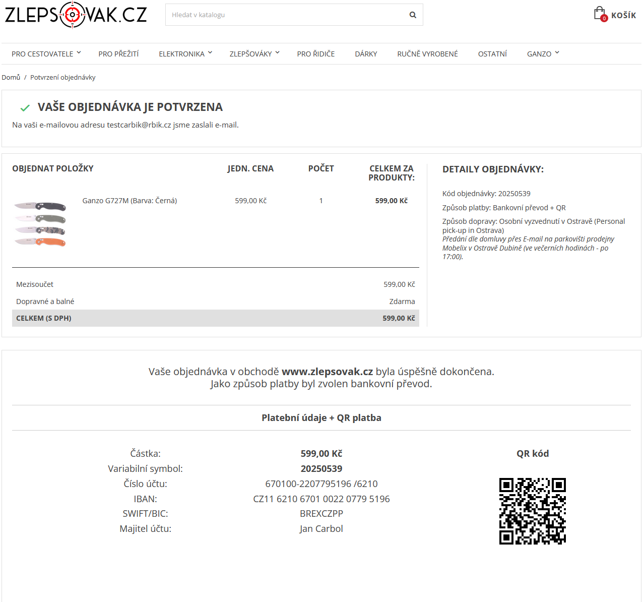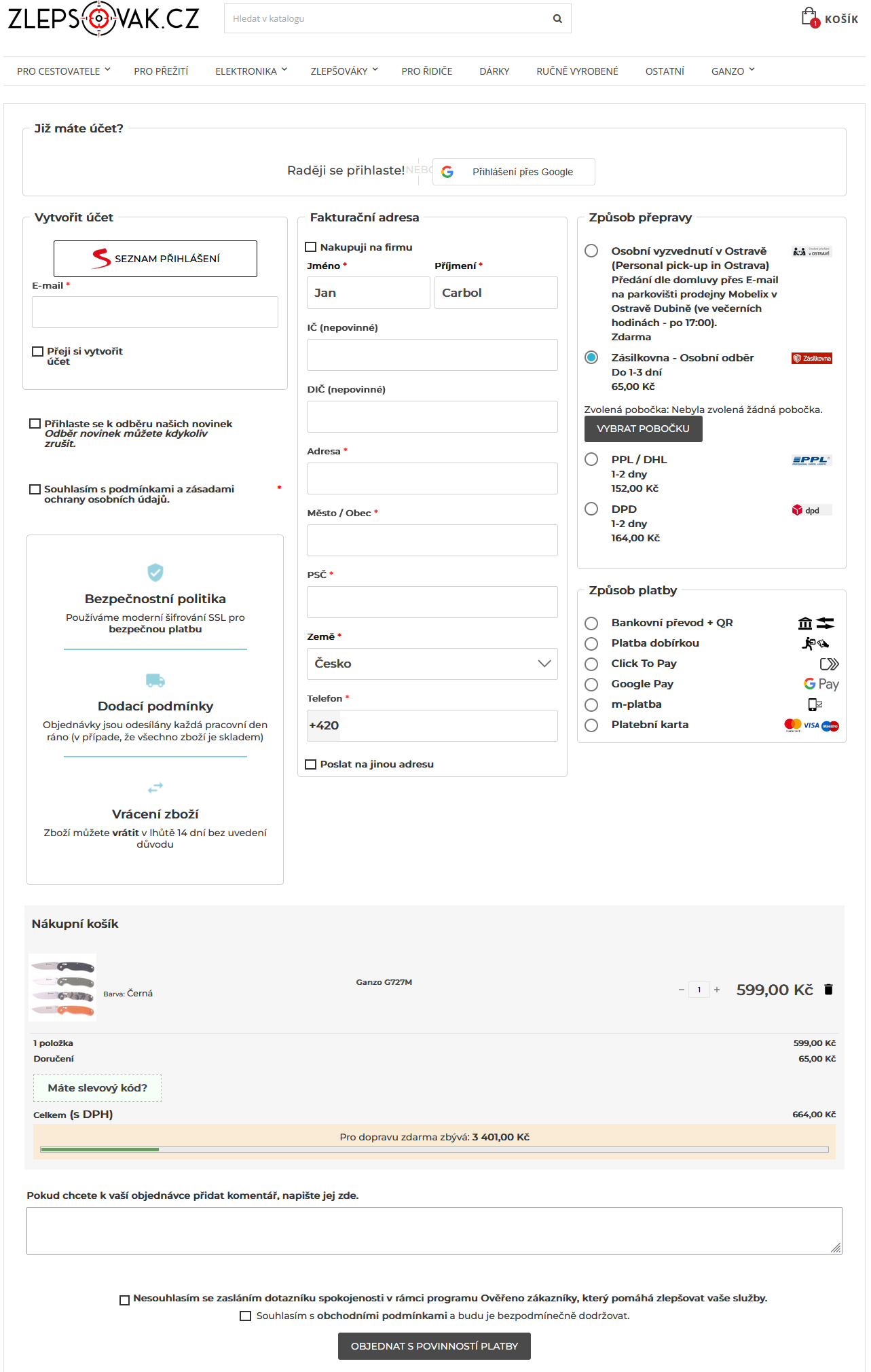 Pokladna sama upozorní na políčka, které je potřeby vyplnit a posledním krokem je kliknutí na tlačítko OBJEDNAT S POVINNOSTÍ PLATBY, čímž objednávku dokončíte a následují její potvrzení.