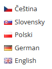 Pro přepnutí eshopu do jiného jazyka použijte malou vlajku v pravém horní rohu. Měna se pak automaticky přepne podle zvoleného jazyka.