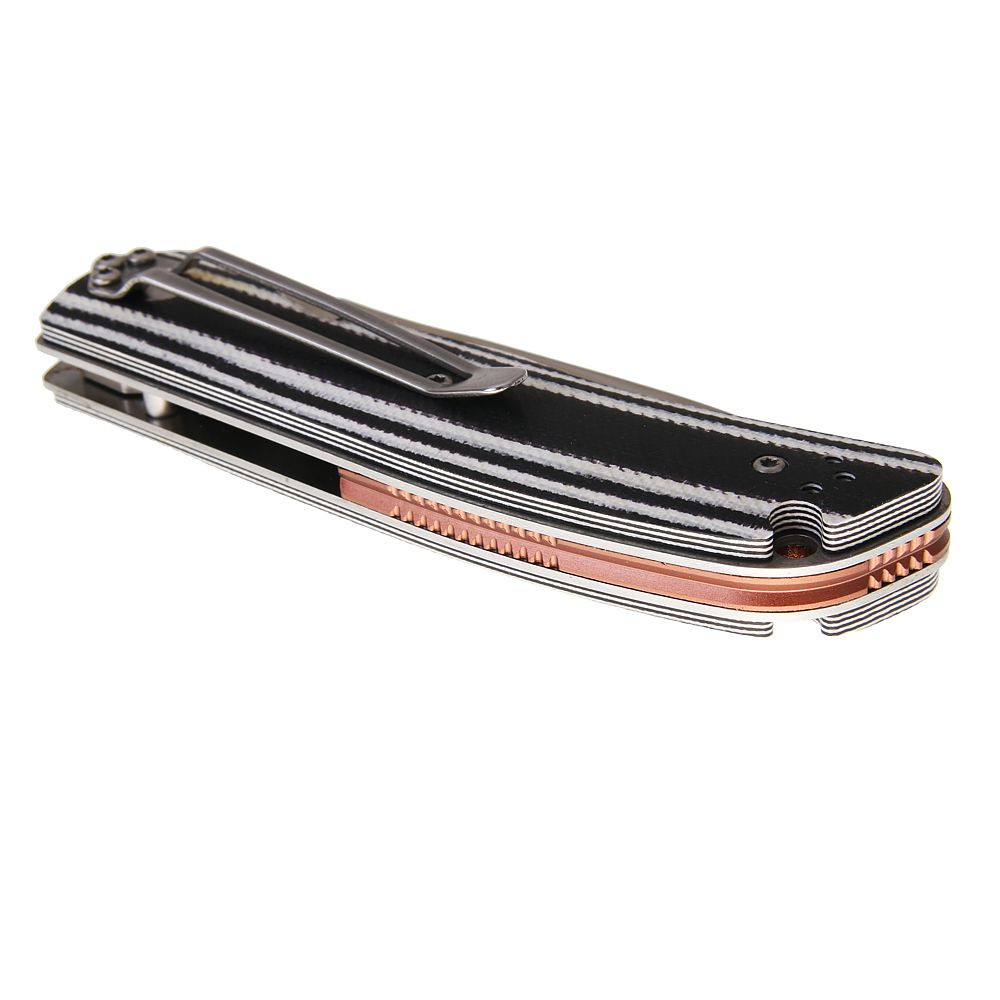 Opravdu elegantní nůž, který se díky svému zaoblenému tvaru pohodlně drží v ruce. Čepel je vyrobena z kalené oceli 8Cr13MoV a je vybavena čepem pro palec, který umožňuje rychlé a snadné otevření čepele téměř z jakékoli polohy - i v silných rukavicích. Čepel je zajištěna v otevřené poloze jen díky mechanizmu Slip Joint - jednoduchý typ pojistky bez zámku, kde je čepel zajištěna v otevřené poloze pomocí pružinového mechanismu. Čepel zavřete, pokud na ni vyvinete dostatečně velkou sílu. Odpor pružiny však zabraňuje jejímu nechtěnému zavření.