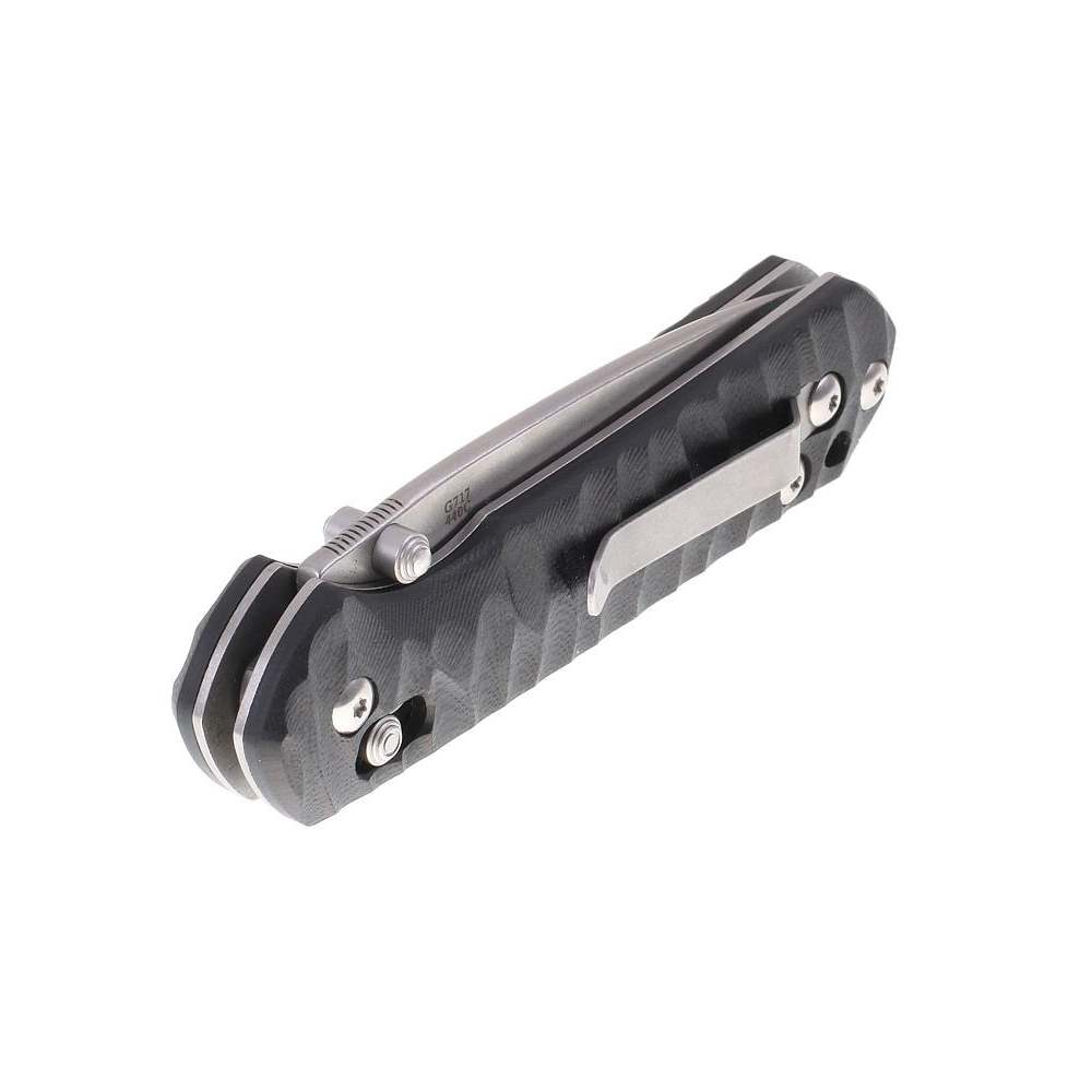 Jednoruční zavírací nůž s "drop-point" čepelí s čepelí s úpravou stonewash a rukojetí s kovovými příložkami se střenkami z kompozitu G-10, pojistkou axis-lock a čepelí z materiálu, označeného 440C. Jeden z mála zavíracích nožů, vhodný jak pro leváky, tak i praváky - kapsový klip je možno přestavit z pravé na levou stranu, ovládací prvky jsou totožné na obou stranách nože.