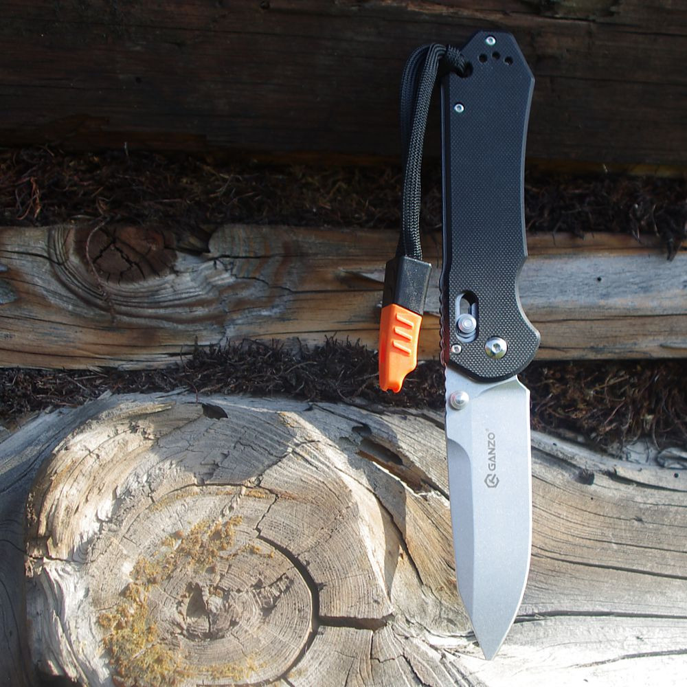 Zavírák s čepelí jištěnou Axis-lockem, s ocelovými příložkami. Čepel je dlouhá 90mm s tloušťkou 2,8mm s plochým výbrusem a úpravou Stonewash. Čepel se otevírá pomocí oboustranného kolíčku. Klip je uchycen na patě střenky, je možno jej přesunout na pravou či levou stranu. Součástí je originální píšťalka Ganzo.
