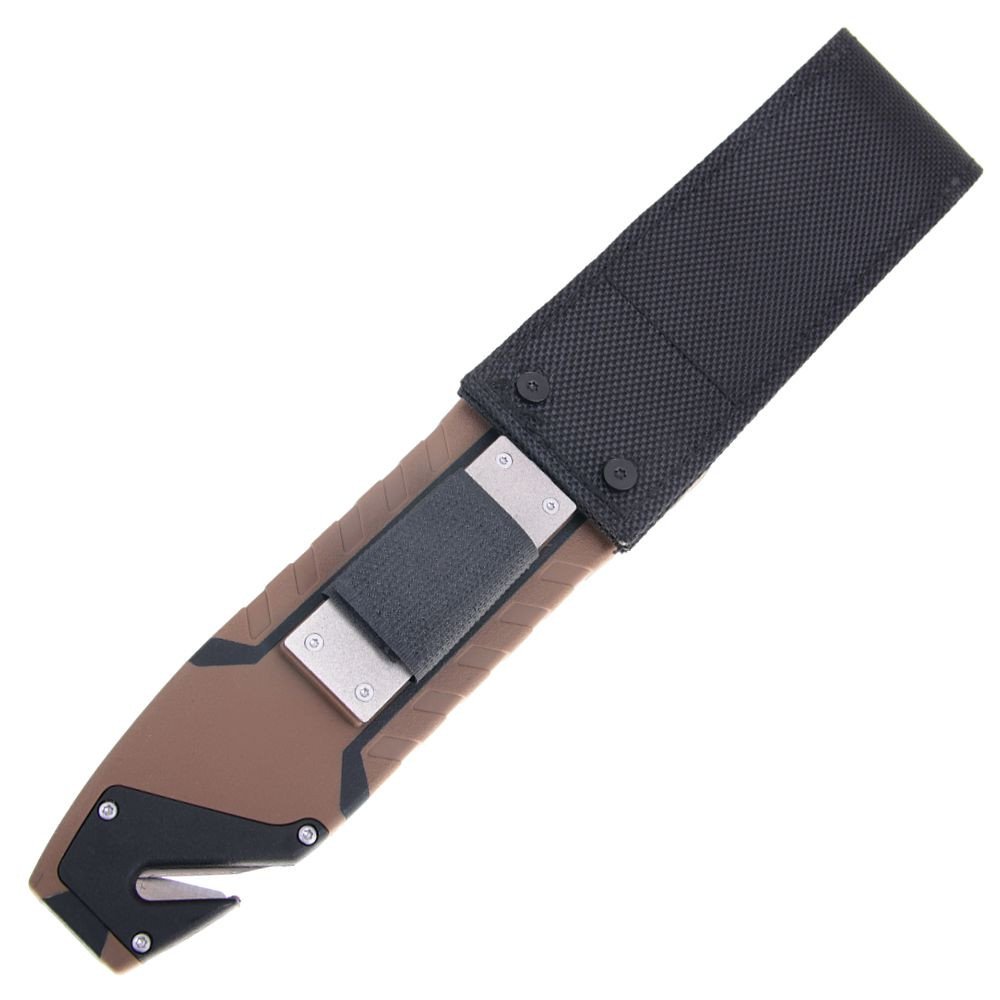 Protože byl nůž navržen pro potřeby dobrodruhů a cestovatelů, disponuje ergonomickou rukojetí, která pohodlně padne do ruky. Zářez pro prst zvyšuje jistotu úchopu a umožňuje bezpečné použití i ve vlhku. Rukojeť je vyrobena z odolného ABS plastu, který je nárazuvzdorný a odolává působení chemikálií, benzínu i kyselin bez ztráty vlastností nebo barvy.