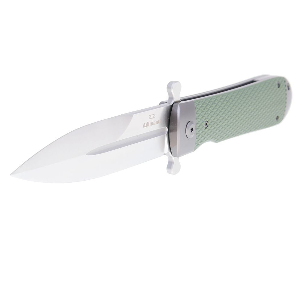 Adimanti Samson je kompaktní Flipper, jehož čepel je bezpečně zajištěna v otevřené i zavřené poloze. Rukojeť má pevný ocelový rám doplněný o dvě texturované střenky z materiálu G10. Tento odolný kompozit vyniká vysokou pevností, odolností vůči nárazům, mrazu i UV záření, neklouže v dlani a dlouhodobě si zachovává svůj vzhled.