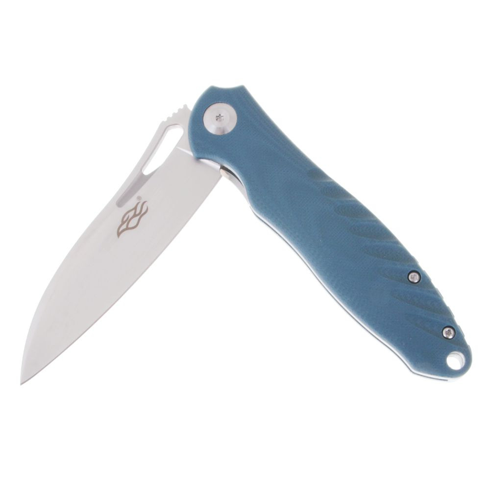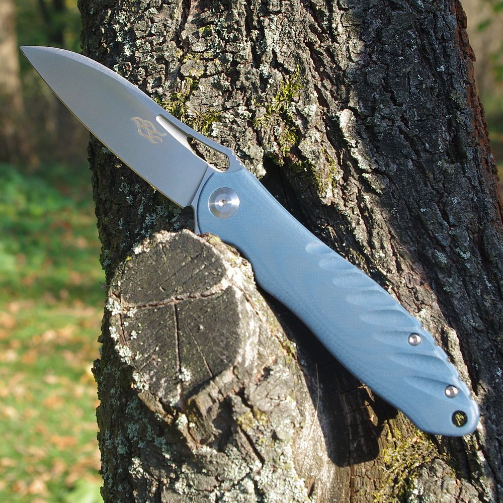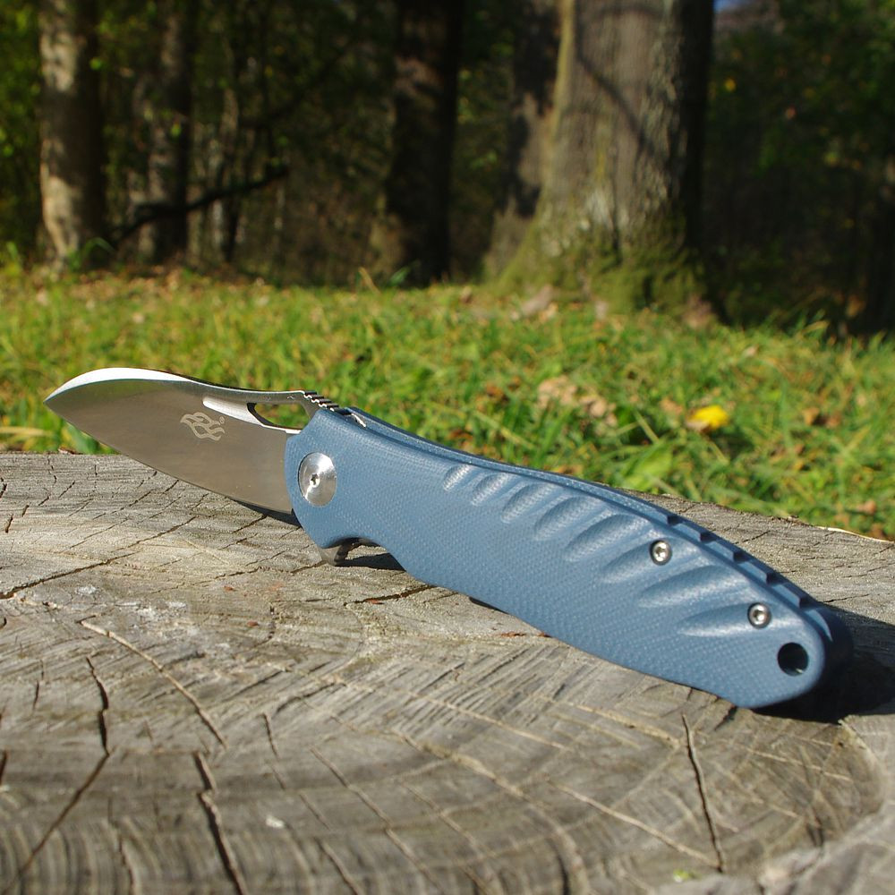Čepel v šedém provedení má hladký povrch a tvar Drop-Point, který je velmi univerzální a oblíbený i mezi lovci. Tento tvar je ideální jak pro řezání, tak pro bodné práce. Použitá ocel D2 patří ke stálicím v nabídce značky Firebird – je pevná, odolná, dlouho drží ostří a při správné údržbě nabízí dobrou ochranu proti korozi.