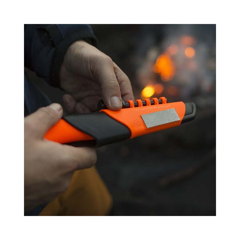 Ostrá čepel s výraznou špičkou, integrované křesadlo a diamantový brousek dělají z nože Bushcraft Survival dokonalý nůž pro bushcraft. Čepel o tloušťce 3,2 mm z nerezové oceli a se speciálně vybroušeným hřbetem umožňuje použití křesadla. Díky fluorescenční oranžové barvě je nůž velmi dobře viditelný, takže ho nemusíte hledat v okolí.