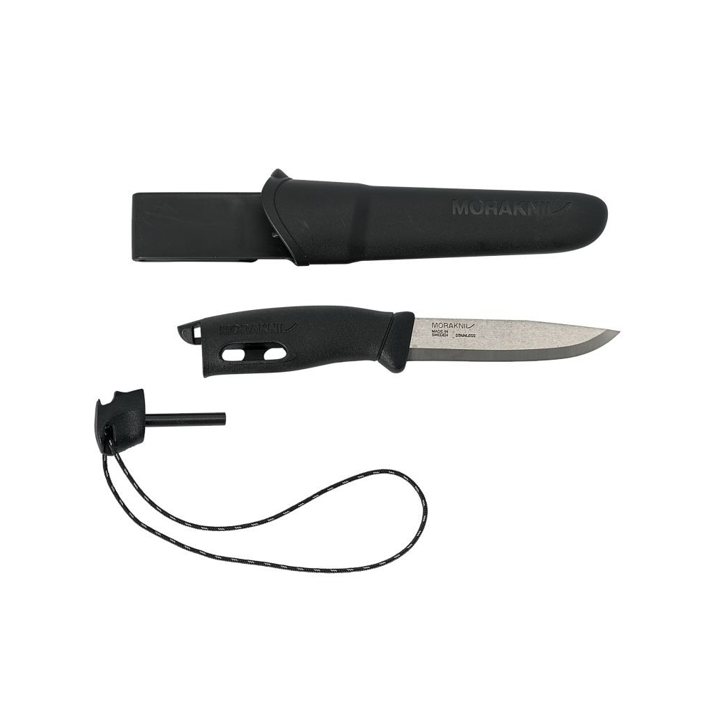 Jedná se o outdoorový nůž s integrovaným křesadlem. Ergonomická polymerová rukojeť má měkký protiskluzný úchop, robustní záštitu prstů a 2,5 mm silnou čepel z recyklované švédské nerezové oceli.