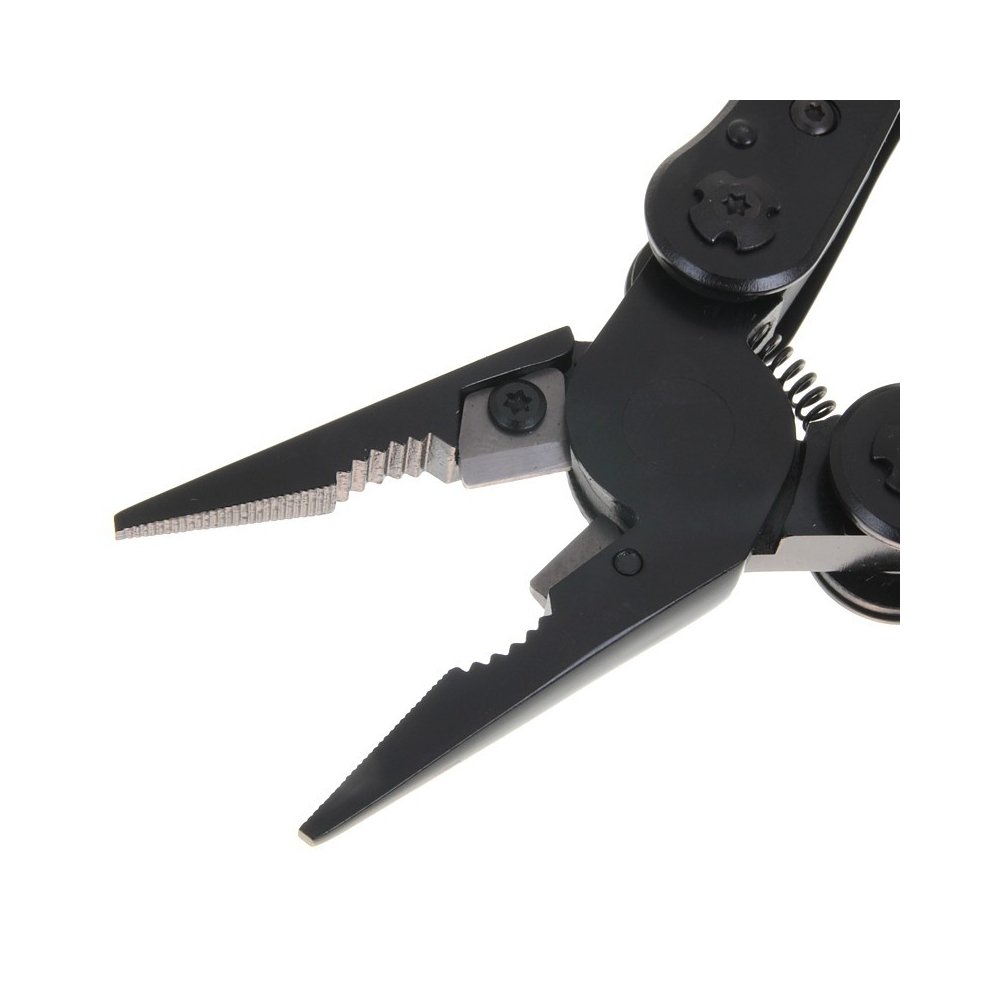 Multitool Ganzo G302B je robustní a spolehlivý nástroj určený pro každodenní použití, outdoor i práci v dílně. Tělo i všechny nástroje jsou vyrobeny z tepelně upravené oceli 440C s černou povrchovou úpravou, která zajišťuje vysokou odolnost proti opotřebení a korozi. Elegantní černé provedení navíc dodává multitoolu moderní a stylový vzhled.