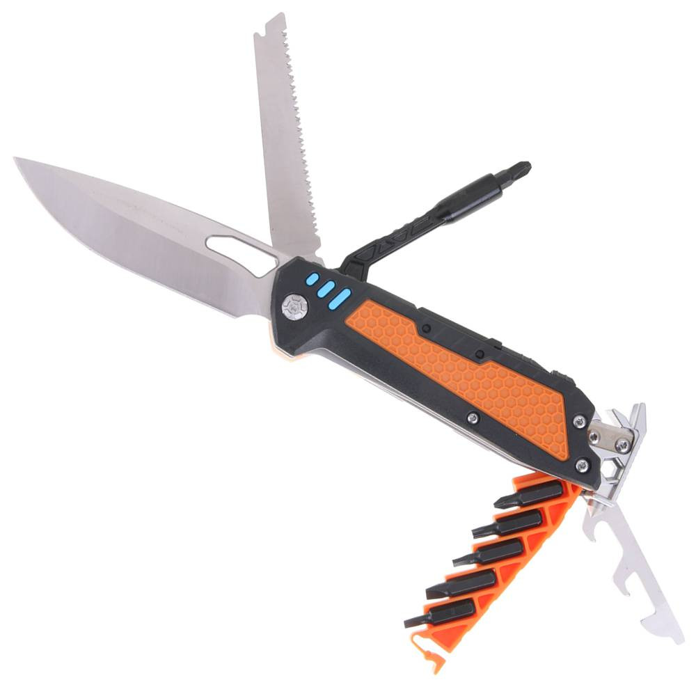 Představujeme multifunkční kombinovaný nástroj, který se stane nepostradatelným společníkem pro kutilské práce, kempování, outdoorové aktivity i každodenní použití. Tento kompaktní přenosný nástroj kombinuje několik funkcí v jednom lehkém a odolném těle vyrobeném z kvalitní nerezové oceli – ideální pro vaši dílnu, výlety i nouzové situace.