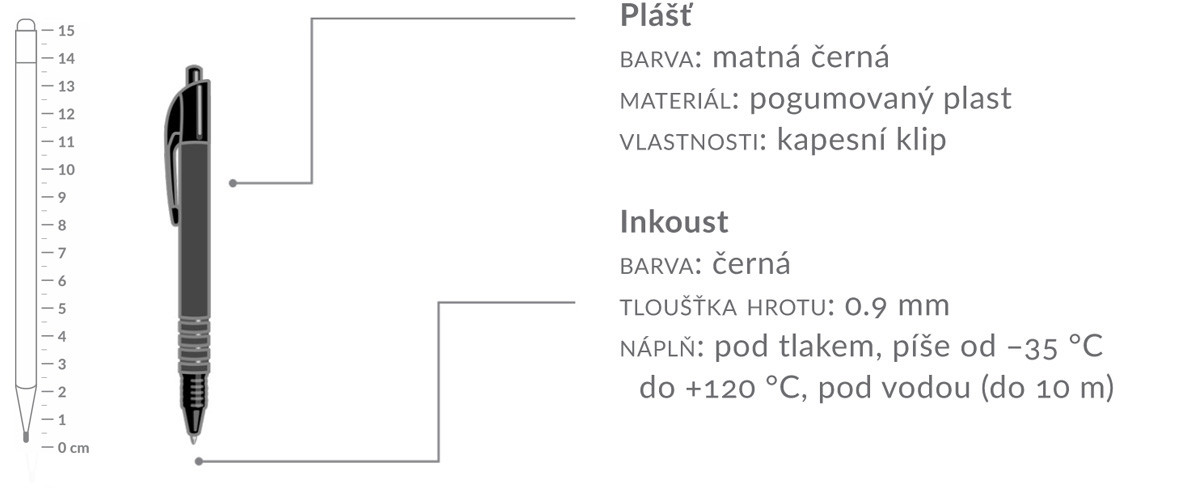 PERO PÍŠE V KAŽDÉM ÚHLUTlakovaná náplň píše od −35 °C do +120 °C, pod vodou (do 10 m). |