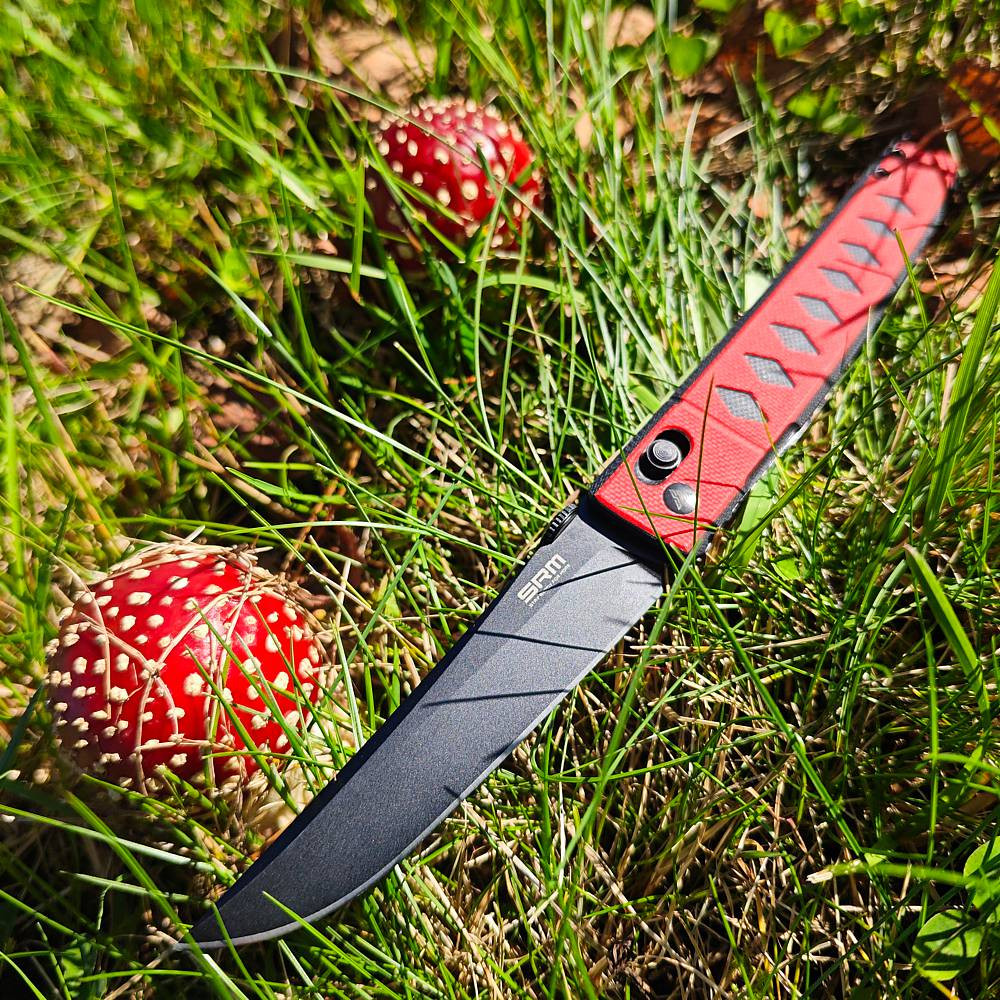 Model 9215 od společnosti SRM je středně velký zavírák s designem meče Tanto. Vzhled rukojeti z materiálu G10 má evokovat představu tradičního ovinutí rukojeti meče, kterou najdete na kataně. Čepel z D2 je podobně provedena, aby připomínala japonský meč. Čepel se otevírá pomocí opěrného kroužku pro palec na hřbetu čepele a je zajištěna systémem SRM Ambi-Lock. To spolu s oboustrannou možností použití kroužku a oboustranným kapesním klipem činí tento nůž ideálním pro praváky i leváky.