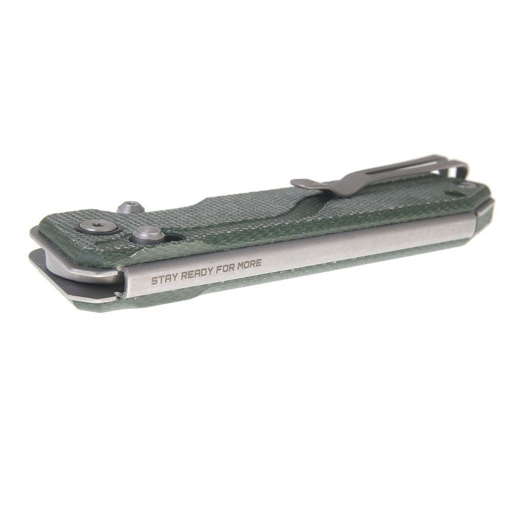 Rukojeť je dostupná v několika odolných variantách – G10, Micarta nebo hliník – a zajišťuje pevný a jistý úchop.