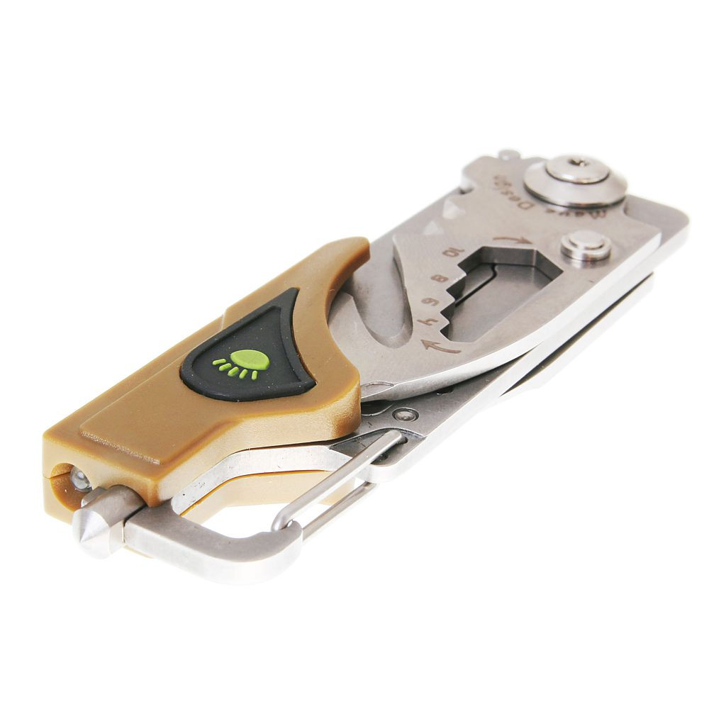 Sanrenmu 6050LUF je multitool s neobvyklým a nezapomenutelným designem. Je ideální pro každodenní nošení (EDC). Karabinka umístěná na rukojeti umožňuje nosit nůž na ramínku džínů nebo na batohu. Krátká čepel s jednostranným ostřením umožní velmi přesný řez a bude nejúčinnější při řezání popruhů, opasků a lan. Ocel třídy 8Cr13Mov je odolná proti korozi, je tvrdá a snadno se ostří. Čepel je zajištěna pojistkou Liner-lock. Kromě čepele je nůž vybaven břitem na pásy, křížovým šroubovákem, odizolovačem a klíčem a na konci rukojeti je malá svítilna a rozbíječ skla. Tento neobvyklý multitool poslouží jak outdoorovým nadšencům, tak obyvatelům velkých měst.