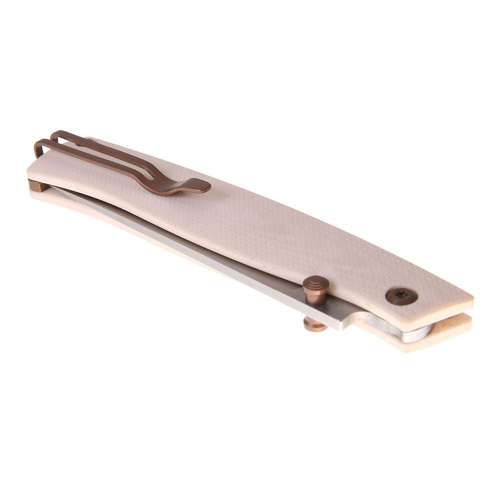 Sanrenmu 311L je skládací, stylový nůž, který je ideální pro každodenní nošení. Celková délka nože je 190 mm a délka čepele je 80 mm. Nůž je vyroben z nerezové oceli Sandvik 12C27, která je známá svou dobrou tvrdostí a odolností proti korozi. Rukojeť je vyrobena z velmi pevného materiálu G10. Spona je rychloupínací - umožní Vám rychlou výměnu strany, nebo její úplné sejmutí pro pohodlnější práci. Pojistka nože je typu Slip Joint. Otevírá se pomocí kolíčku. Primární určení nůže je jako zavírací kuchyňský nůž, ale díky 2,5 mm silné čepeli si poradí s jakýmikoliv každodenními úkoly.