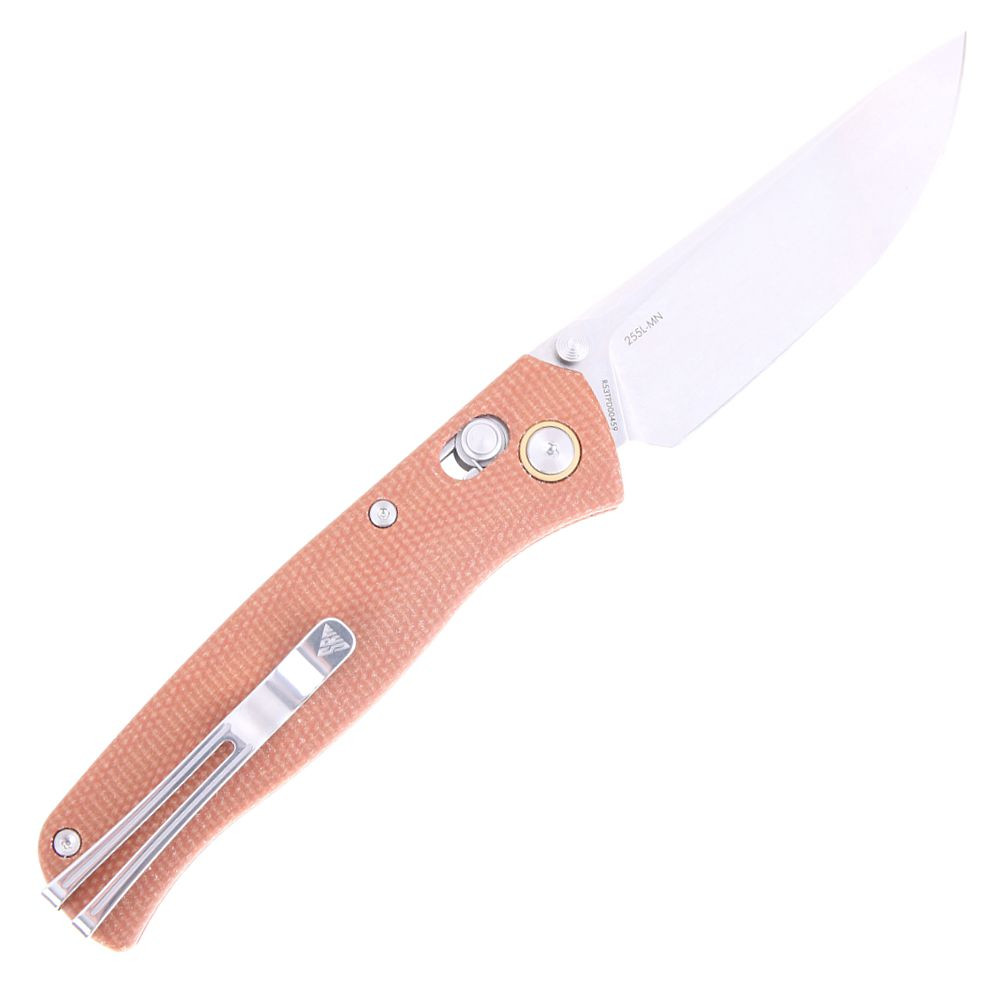 Váží 70 gramů, takže je dokonale vhodný pro každodenní nošení. Díky palcovému kolíku (thumb stud) a keramickým ložiskům se čepel otevírá plynule jednou rukou – palcem nebo prostředníčkem. Při uzamčení vydá jemné cvaknutí, které značí, že je nůž bezpečně připraven k dalšímu řezu.