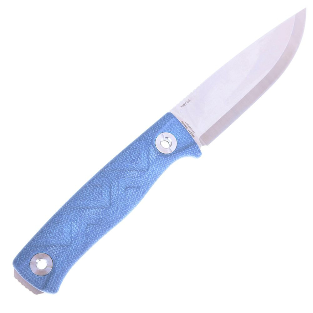 Ergonomická rukojeť z materiálu Micarta nebo G10 zaručuje pevný a neklouzavý úchop, a to i za mokra. Prodloužená patka rukojeti může zároveň sloužit jako malé kladívko – ideální pro všestranné využití v přírodě.