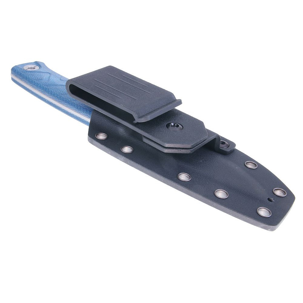 Součástí nože je odolné pouzdro z materiálu Kydex, které nabízí různé možnosti nošení a spolehlivě drží nůž na místě, i při pohybu v terénu.