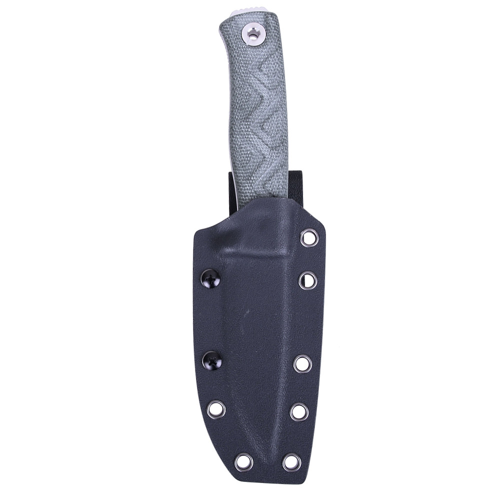 Součástí nože je odolné pouzdro z materiálu Kydex, které nabízí různé možnosti nošení a spolehlivě drží nůž na místě, i při pohybu v terénu.