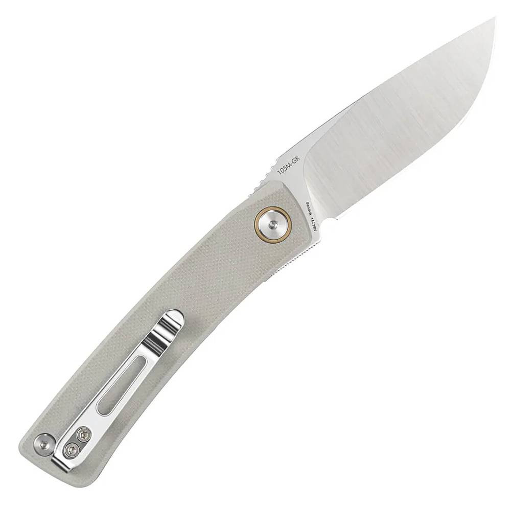 Model SRM 105M-GK Air je vybaven čepelí typu Drop-Point z prvotřídní oceli Sandvik 14C28N, která nabízí vynikající ostrost, snadnou údržbu a vysokou odolnost proti korozi. Díky tomu je ideální volbou pro každodenní nošení i náročnější použití v přírodě.