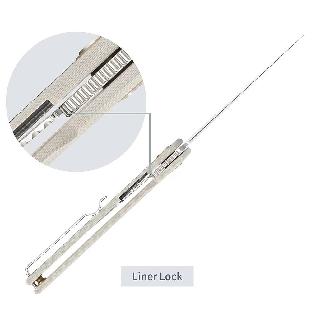 Spolehlivá pojistka Liner-Lock zaručuje bezpečnost při práci, zatímco texturovaná rukojeť z materiálu G10 poskytuje pevný a jistý úchop i v náročných podmínkách – za vlhka, v rukavicích nebo v terénu.