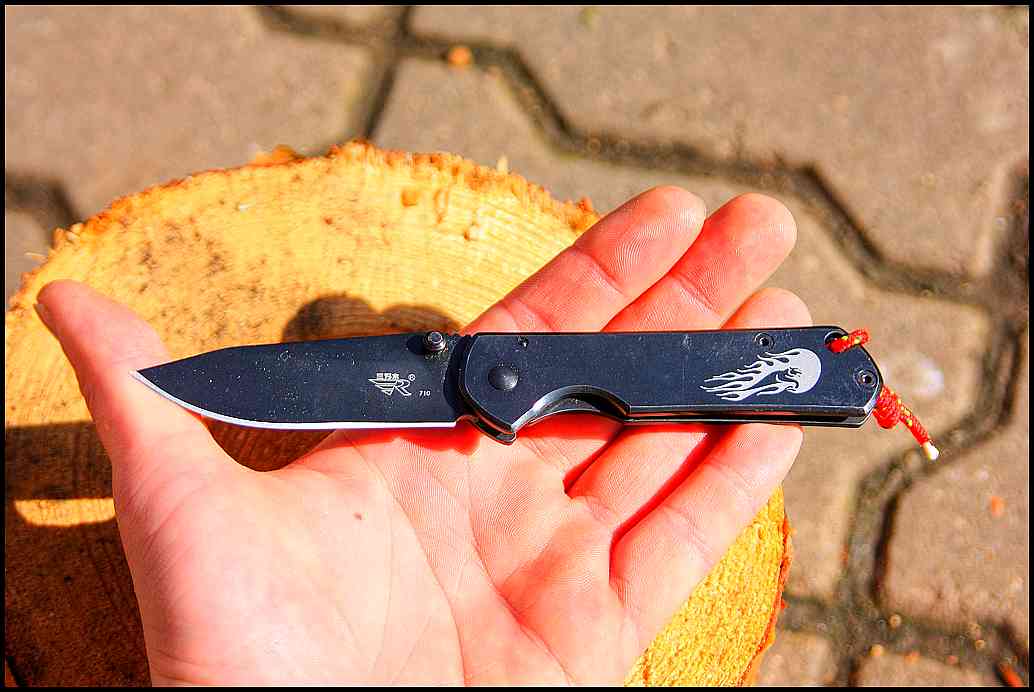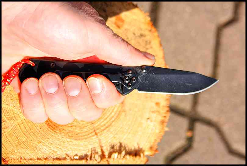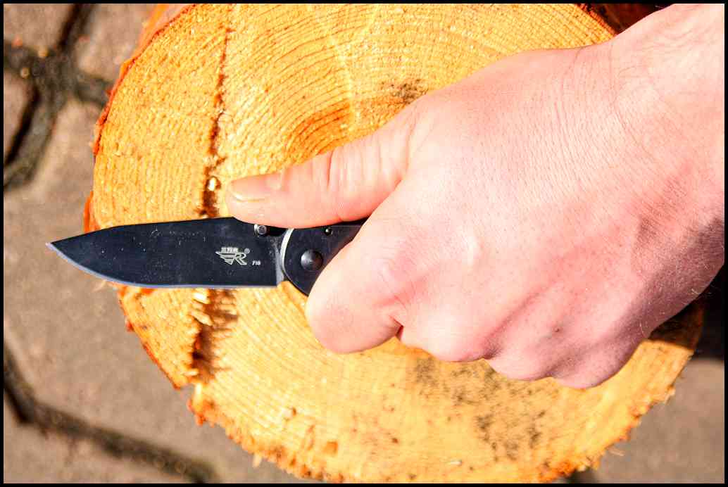 Ostří už z výroby přišlo hezky jedovaté. S čepelí se dobře dělají jemnější řezy. Při opření palce o zdrsnění u otevíracího kolíčku se čepel dobře vede řezem. Už na první pohled je vidět, že není určena na hrubou práci – např. konzervu bych s tímto nožem rozhodně neotevíral. Dobře se brousí, ostrost drží poměrně dobře. Černění na čepeli nemá velkou tendenci se odírat či odlupovat. Pokud se nůž používá na „jemnou práci“, černění se prakticky vůbec nepoškozuje. Pokud si jemně povolíte středový šroubek, čepel otevřete ze zavřeného stavu silnějším tlakem na kolíček. Trošku nevýhoda je kovová rukojeť. Pokud nůž v zimě zapomenete někde venku, při dalším úchopu hodně nepříjemně studí. V mrazu jsem tuto zkušenost už jednou udělal také.