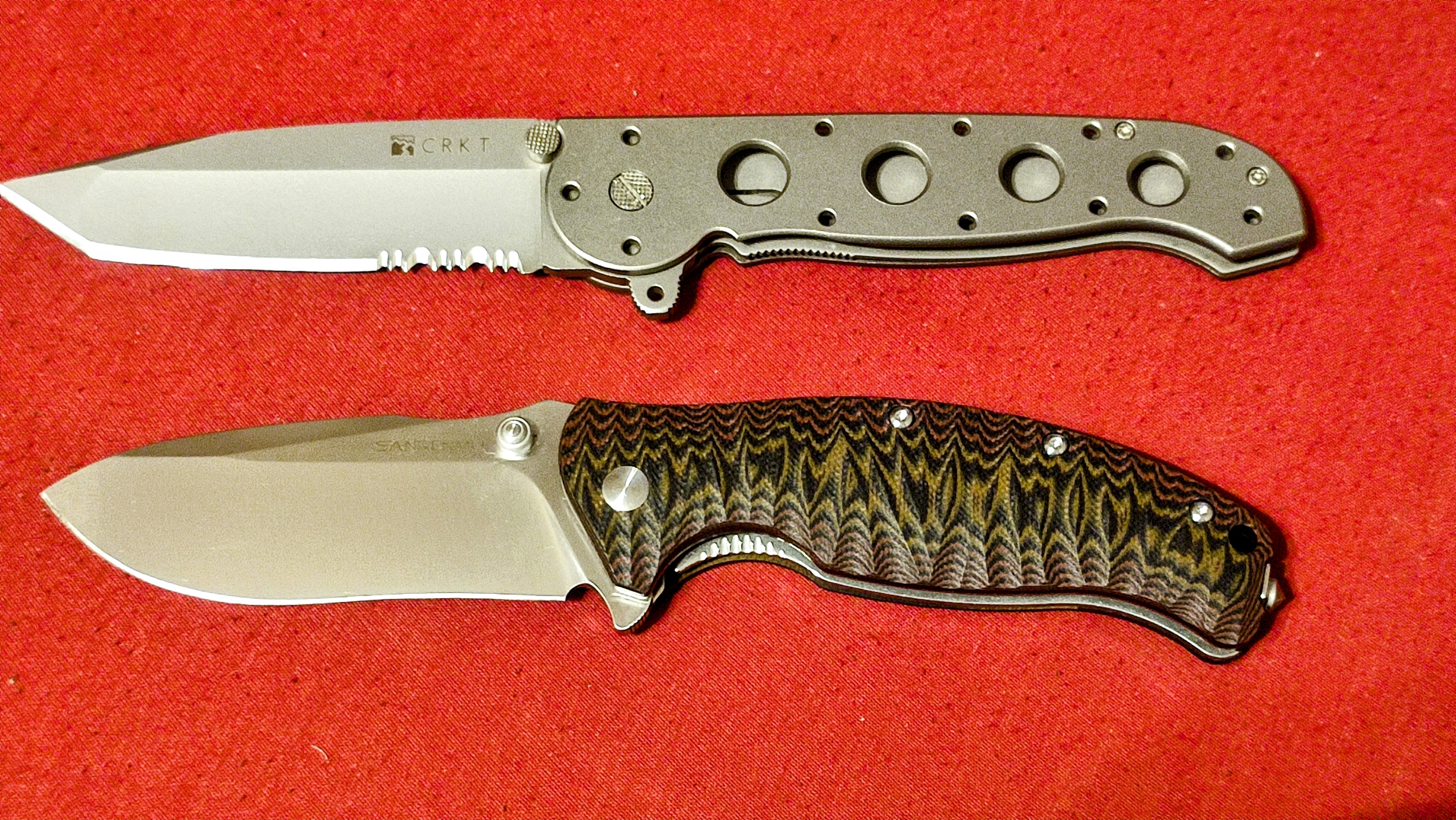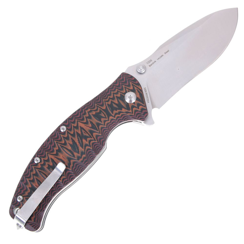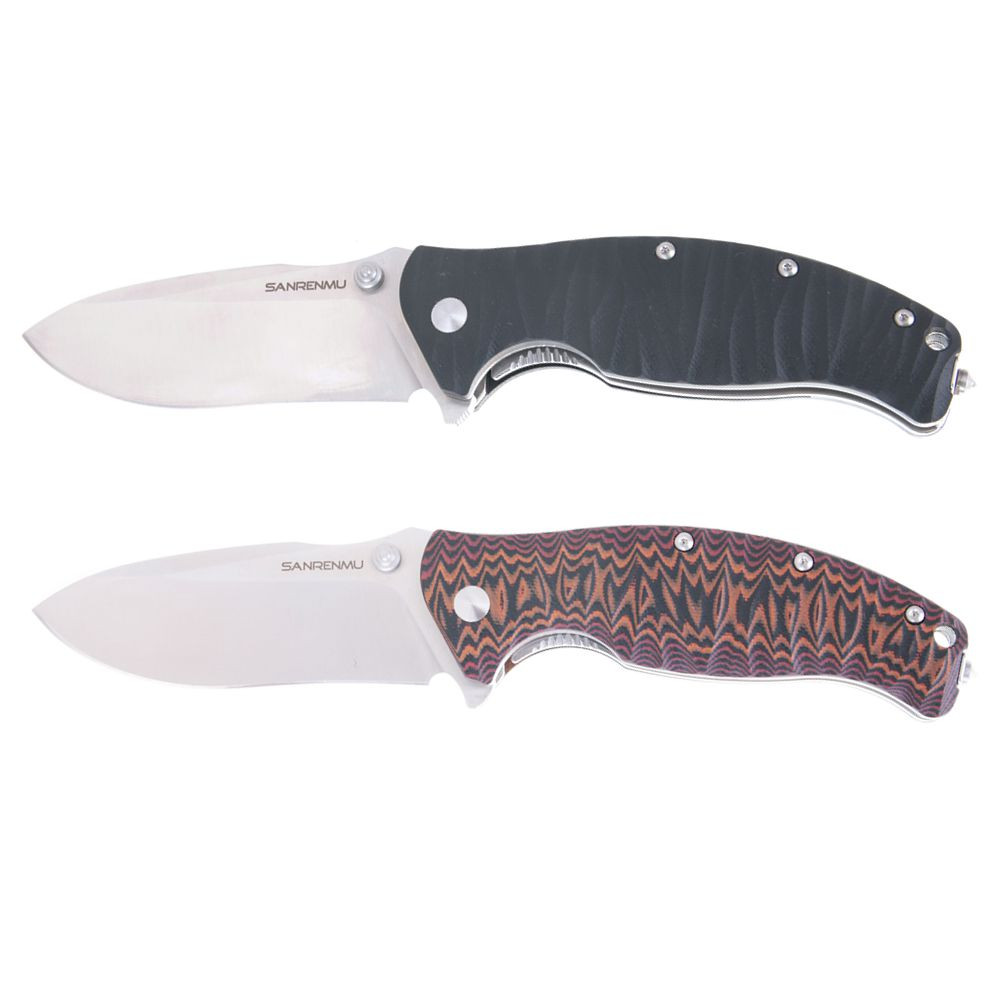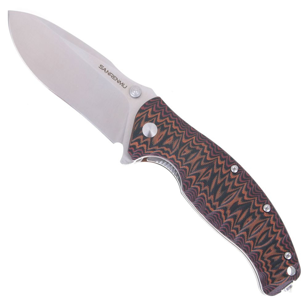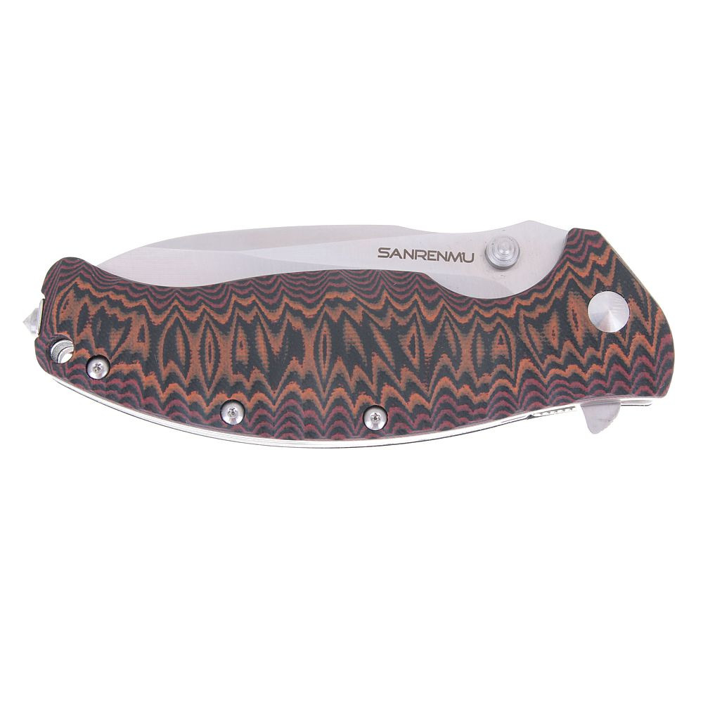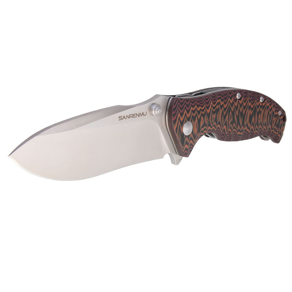 Sanrenmu 1006 není žádné tintíko. Se svou vahou 180g Vám už bude stahovat kalhoty. Však samotná tloušťka čepele je 3,9mm. Vybaven je ocelovým trnen na konci nože a k otevření Vám pomůže pin. Čepel má plochý výbrus a je typu drop point.