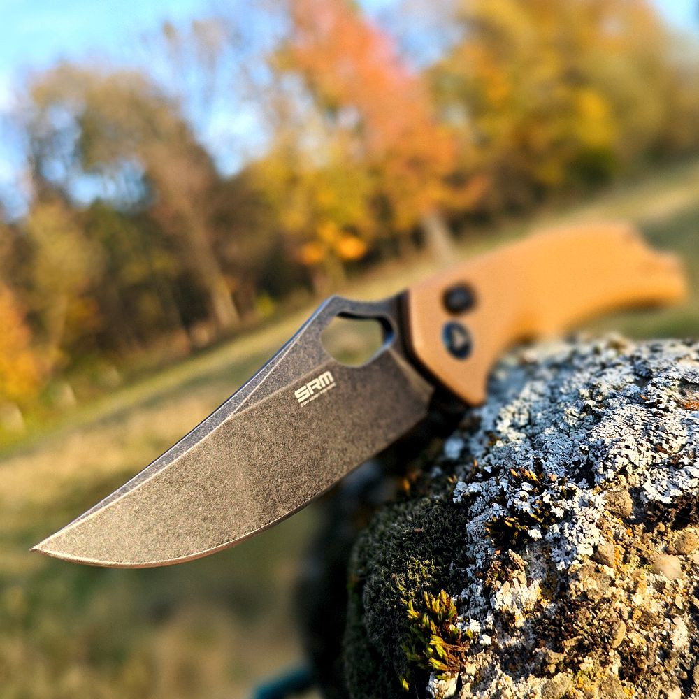 SRM 9202-GW má čepel z oceli D2 o délce 90 mm, která byla kryogenicky ošetřena a má tvrdost 59~61 HRC, zaručuje tak velmi dobrý řezný výkon a zároveň velmi dobře drží ostří. Díky oboustranné pojistce Axis Lock a otvoru pro palec se s nožem snadno manipulujje a pracuje.