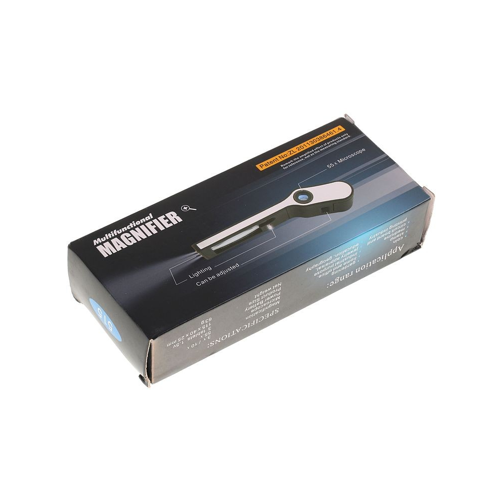 Kapesní lupa 3/10x, mikroskop 55x, bílé a UV podsvícení a svítilna - 6v1