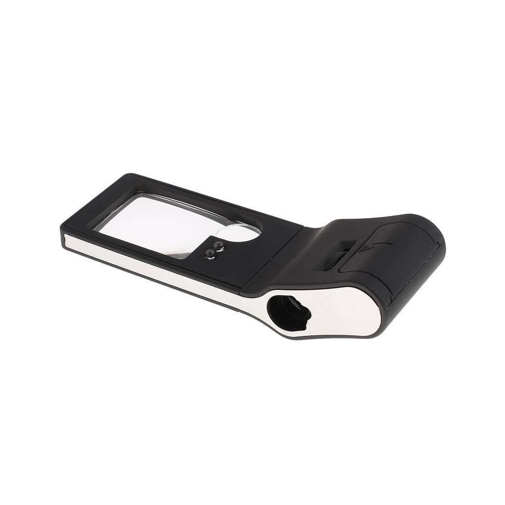LED-Blitzlicht (eine weiße LED leuchtet unter der Lupe - zum Lesen von Karten, Betrachten von Briefmarken usw.)