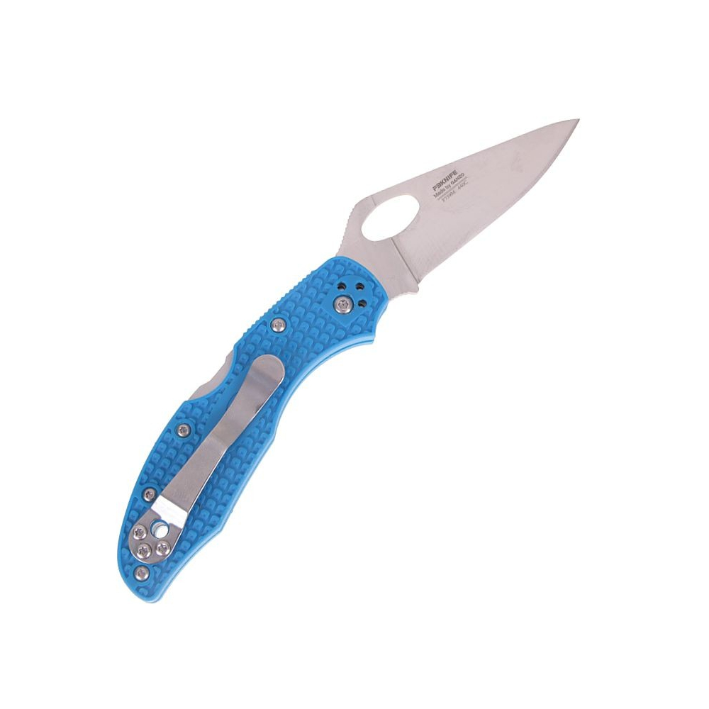 Der Griff besteht aus robustem G10, das sich durch geringes Gewicht und hohe Festigkeit auszeichnet. Die Griffschalen sind mit fünf Schrauben befestigt, während der Metall-Taschenclip mit weiteren drei Schrauben montiert ist. Der Clip lässt sich in vier verschiedenen Positionen anbringen, was ein bequemes Tragen nach den Vorlieben des Nutzers ermöglicht. Das Messer ist in mehreren Griff-Farbvarianten erhältlich: schwarz, orange, rosa und blau.