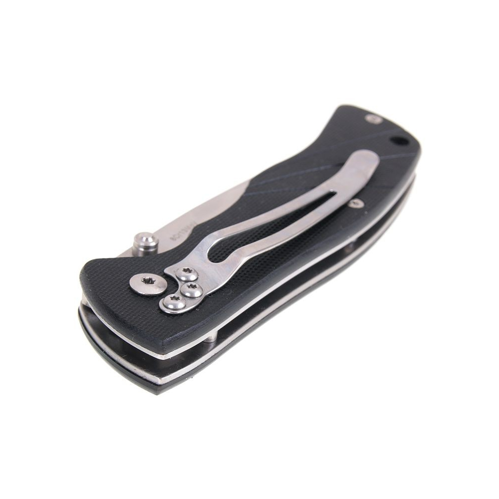 Ein sehr handliches Messer mit einfachen, schlichten Formen, mit einer Drop-Point-Klinge aus 8Cr13Mov, hohlgeschliffen, beidseitig gestiftet und mit einem starren Liner-Lock gesichert. Die Klingen sind aus G10-Material gefertigt, aufgeraut mit feinem Fischgrätenmuster. Der Clip ist wieder zuverlässig starr mit einer Tip-Down-Tragekonfiguration.