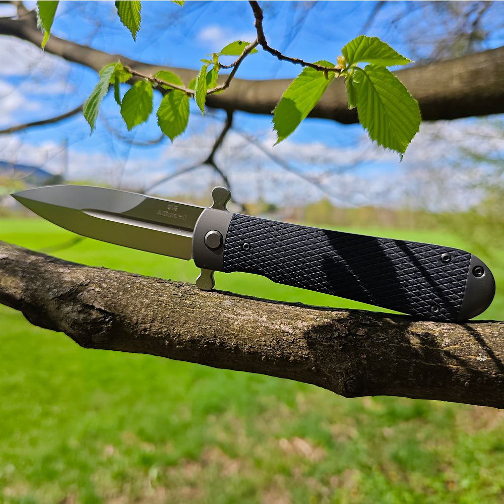 Dank der symmetrischen Klingenform erinnert das Messer optisch an einen Dolch, was seinen dynamischen Charakter unterstreicht. Die kompakten Abmessungen ermöglichen ein komfortables tägliches Tragen in der Tasche – sowohl in der Stadt als auch im Outdoor-Einsatz. Die Konstruktion ist zudem äußerst widerstandsfähig gegenüber Feuchtigkeit und aggressiven Umwelteinflüssen, einschließlich gängiger Säuren.