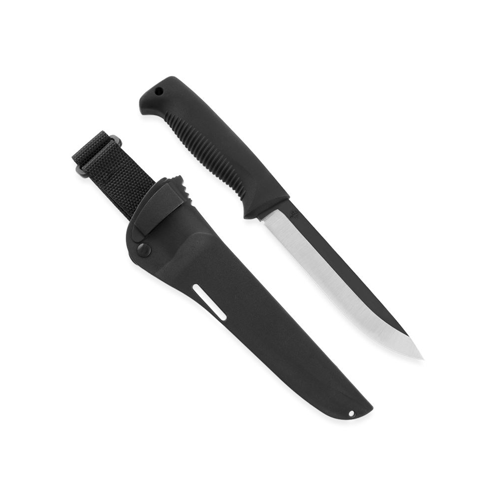 Das Ranger-Messer wurde vom Hauptmann der finnischen Verteidigungsstreitkräfte, J-P Peltonen, entworfen. Klinge aus Kohlenstoffstahl mit polierter Oberfläche, Griff aus Thermoflex-Polymer, Kunststoffscheide.