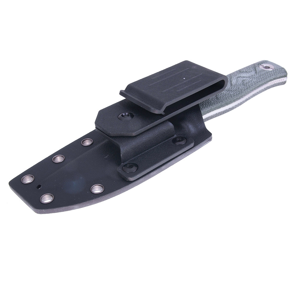 Das robuste Kydex-Holster ermöglicht mehrere Trageoptionen und hält das Messer stabil und sicher an seinem Platz, egal wohin dein Weg dich führt.