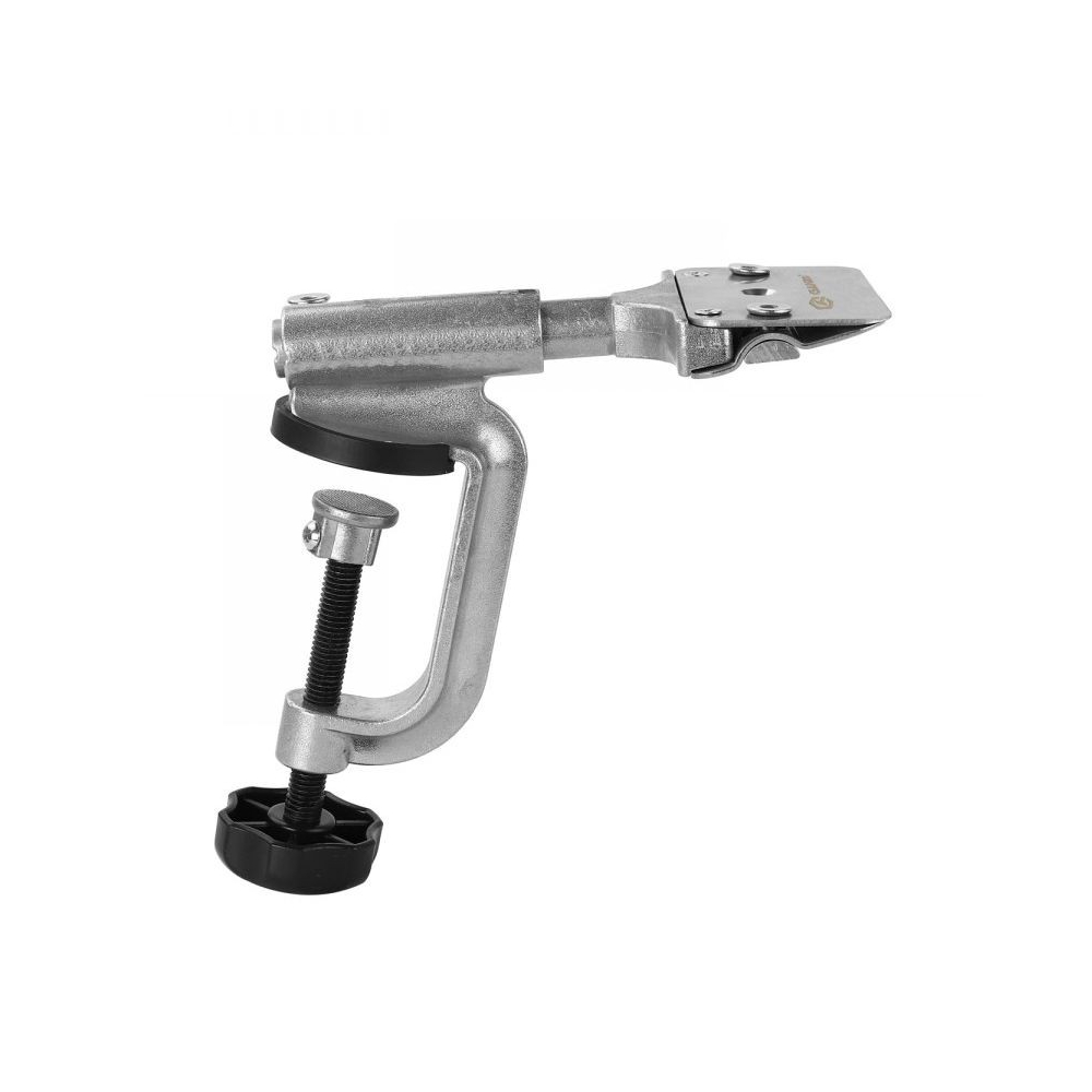 Das durchdachte Design ermöglicht eine feste Befestigung an der Arbeitsplatte mittels Schraubzwinge und gewährleistet maximale Stabilität beim Schleifen. Das System besteht aus mehreren Teilen und lässt sich einfach zerlegen und transportieren.