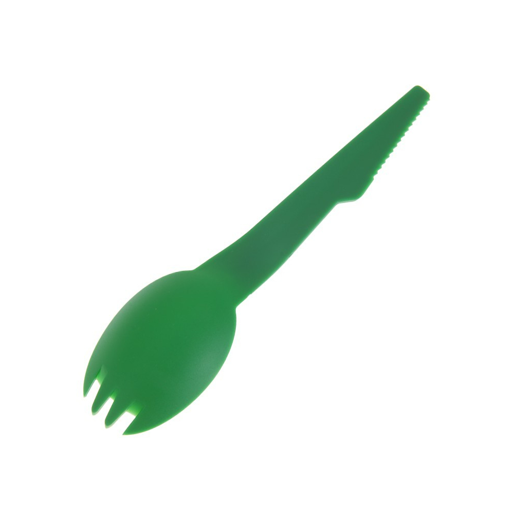Leichtes und kompaktes 3-in-1 Reisebesteck (Gabel, Löffel, Messer) aus Polypropylen, ideal für Wandern, Camping und Outdoor. BPA-frei, leicht zu reinigen.