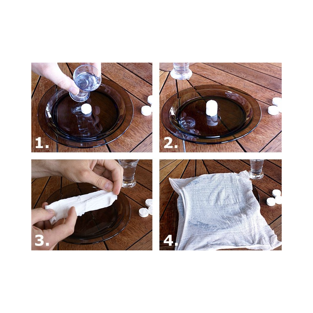 The magical transformation of a small tablet into a silk napkin is as follows: you pour or soak the tablet in cold or hot water, disinfectant, etc., after soaking up the liquid, you unroll the finished napkin.