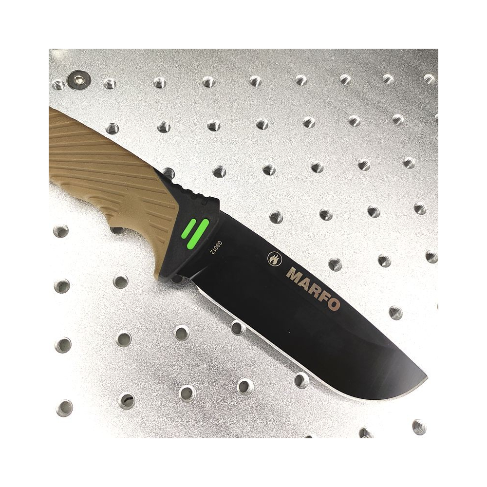 Use the option of Fiber laser marking with 30W laser power. The inscription can be placed on the blade, clasp or scabbard (if metal).