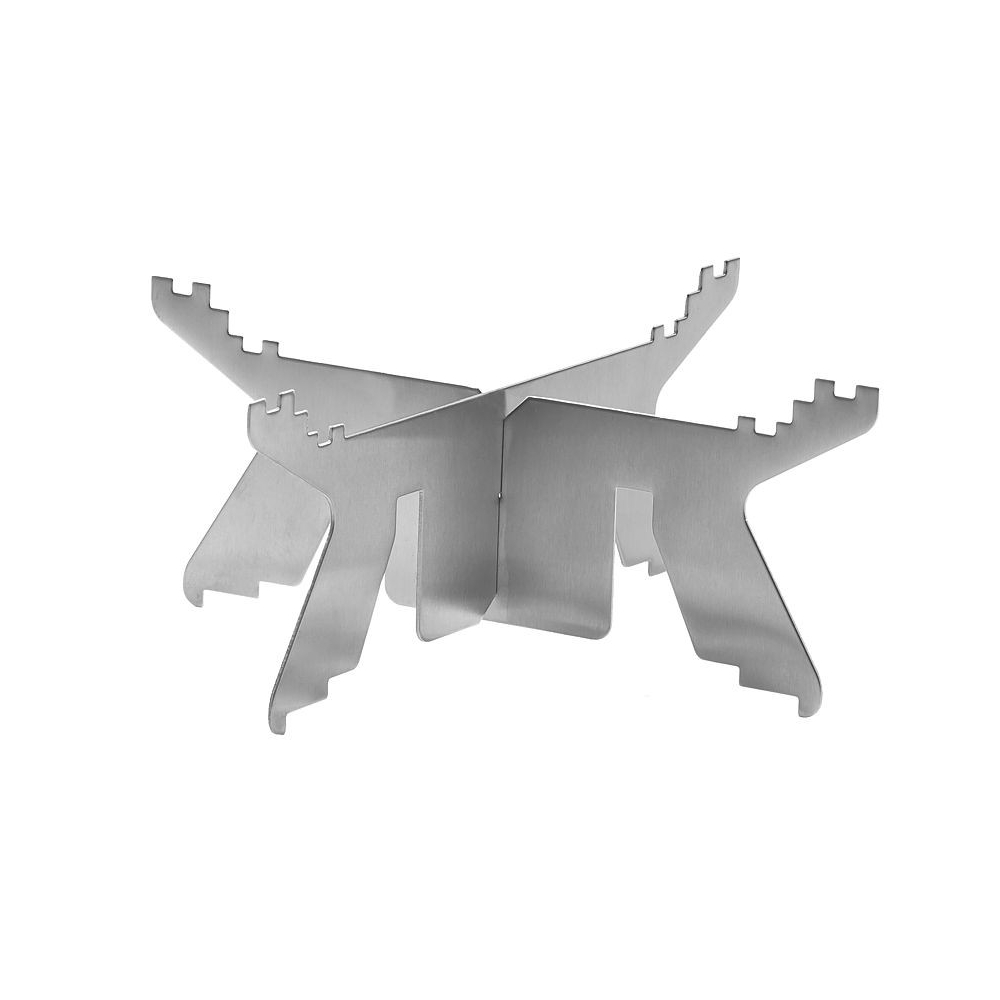 Cook Set pot support – stable and safe outdoor cooking. Maximizes chimney heat for fast cooking of noodles, rice, soups, and dehydrated meals. Made of stainless steel, rainproof, portable, and eco-friendly.