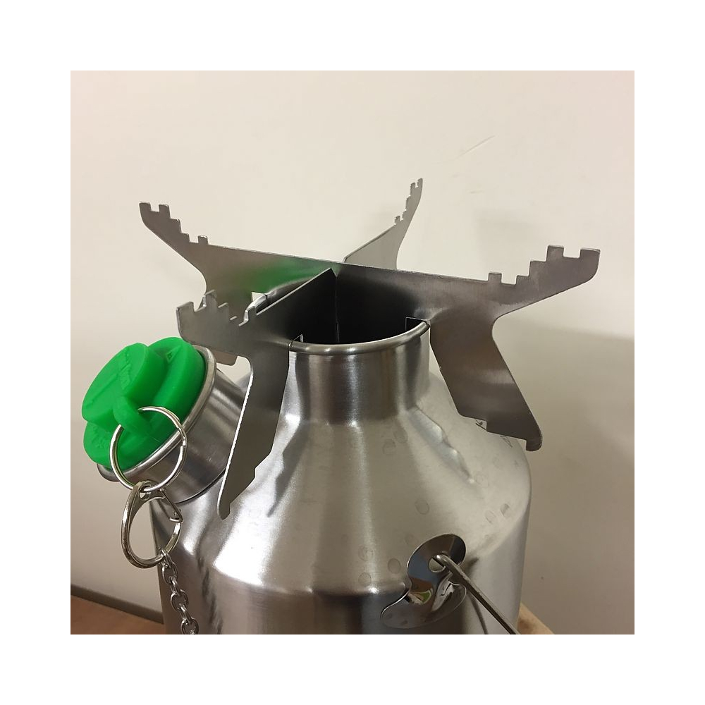 This practical support allows you to place the Cook Set directly on top of the kettle while boiling water. It utilizes all the heat generated in the chimney, ensuring maximum fuel efficiency. The kettle works great even in the rain – with the pot support, you can cook in extremely adverse weather conditions.