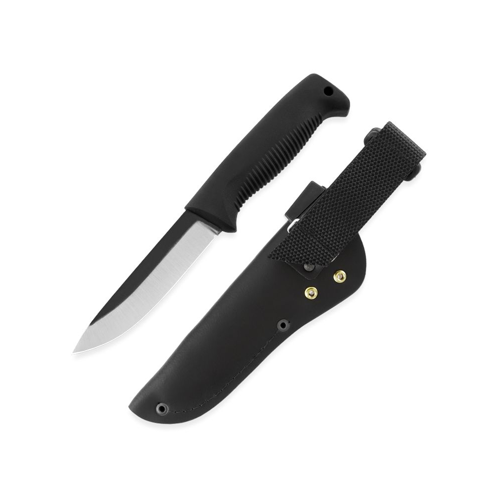 Short version of Finnish army knife M95 Ranger Puukko with polished blade and leather sheath