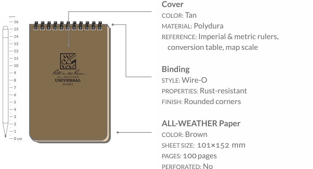 "Rite in the rain" is a special waterproof paper suitable for use in all weather conditions. In the African jungle, in the Alaskan winter, in the sweat and grime of the Iraqi desert, "Rite in the Rain" will always ensure that your notes will last!