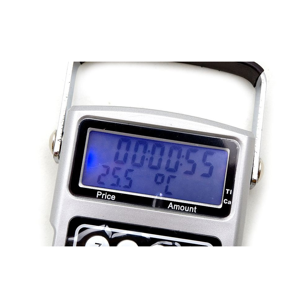 Digital scale 7in1 (calculator, digital thermometer, clock, meter, unit price mode, weighing and strap weighing), max 50kg