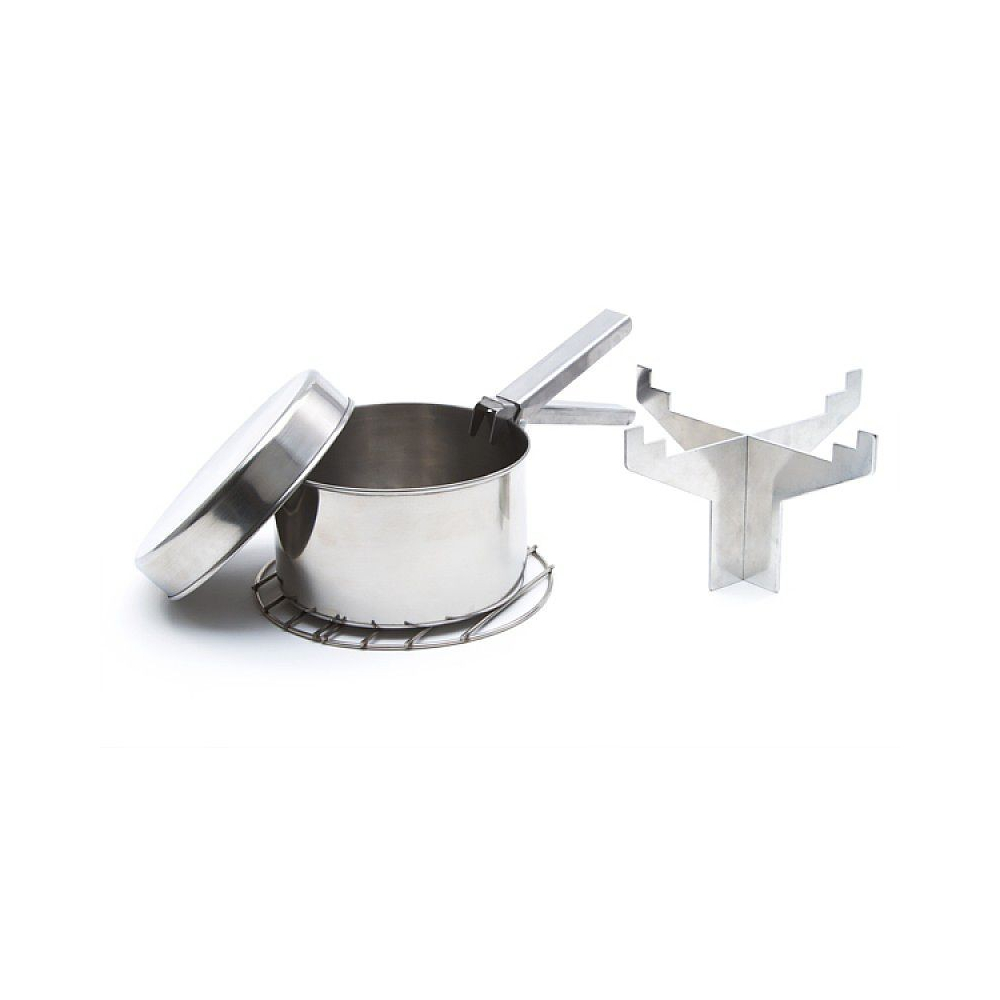 Includes Scout Stainless Steel Kettle 1.2L + Large Cook Set + Kettle Support + Hobo Stove + Stainless Steel Mug Set + Plate Set + Packaging