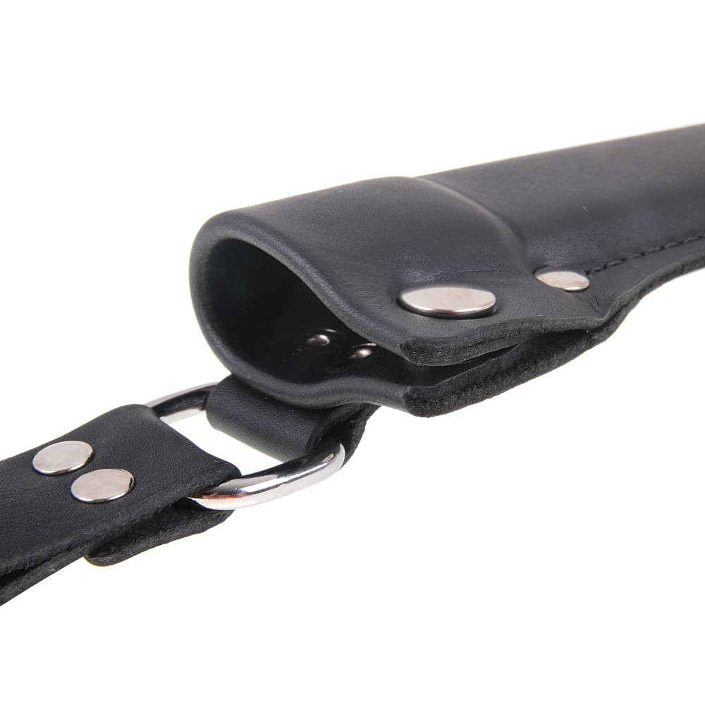 The sheath edge is double-folded to create a sturdy collar around the handle. When drawing the knife, the edge slides along the open side, so the leather is not cut by the blade, helping the sheath maintain a long lifespan.
